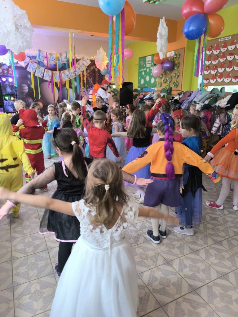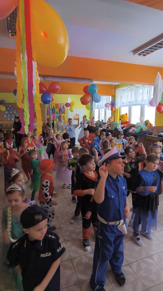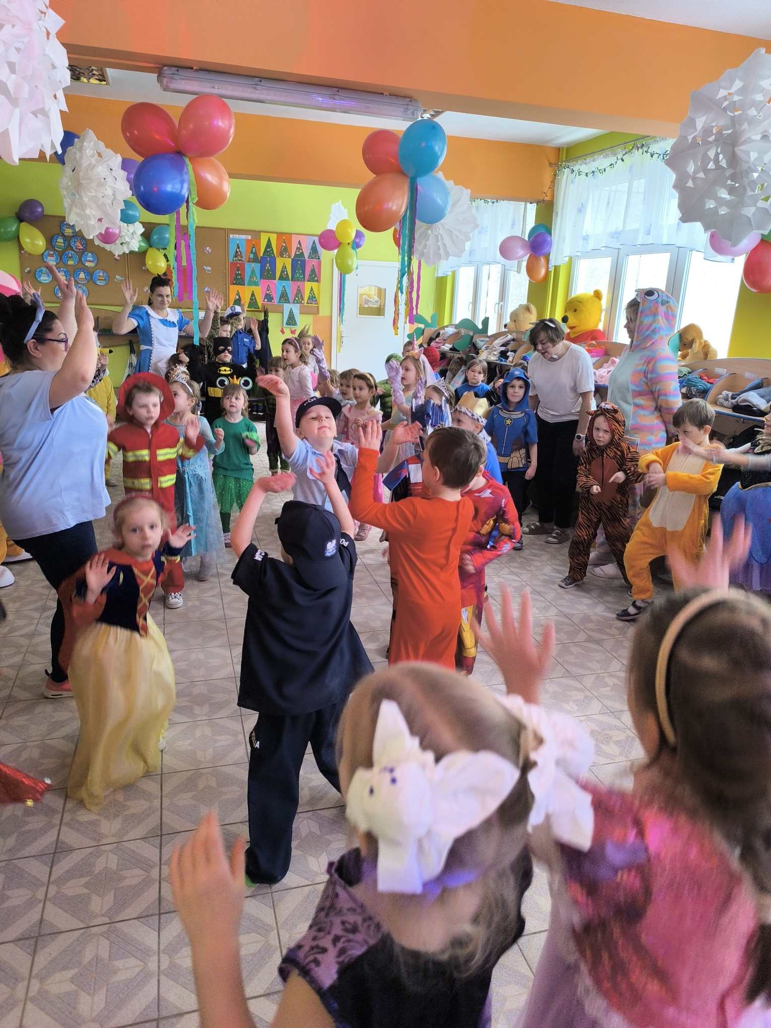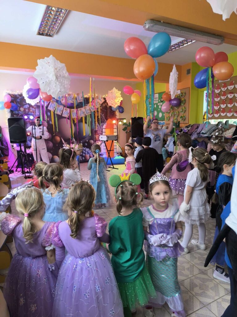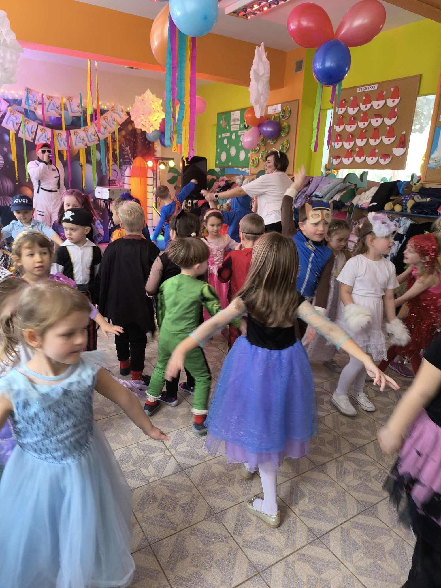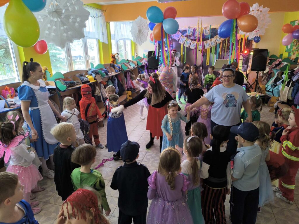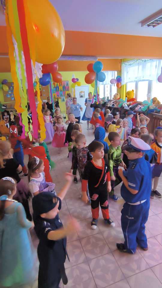 Dzieci były przepięknie i bardzo pomysłowo przebrane, a na sali królowały uśmiechy, tańce i radosny śmiech. Nie brakowało wspólnych zabaw, muzyki i pozytywnej energii – wszyscy bawili się znakomicie!