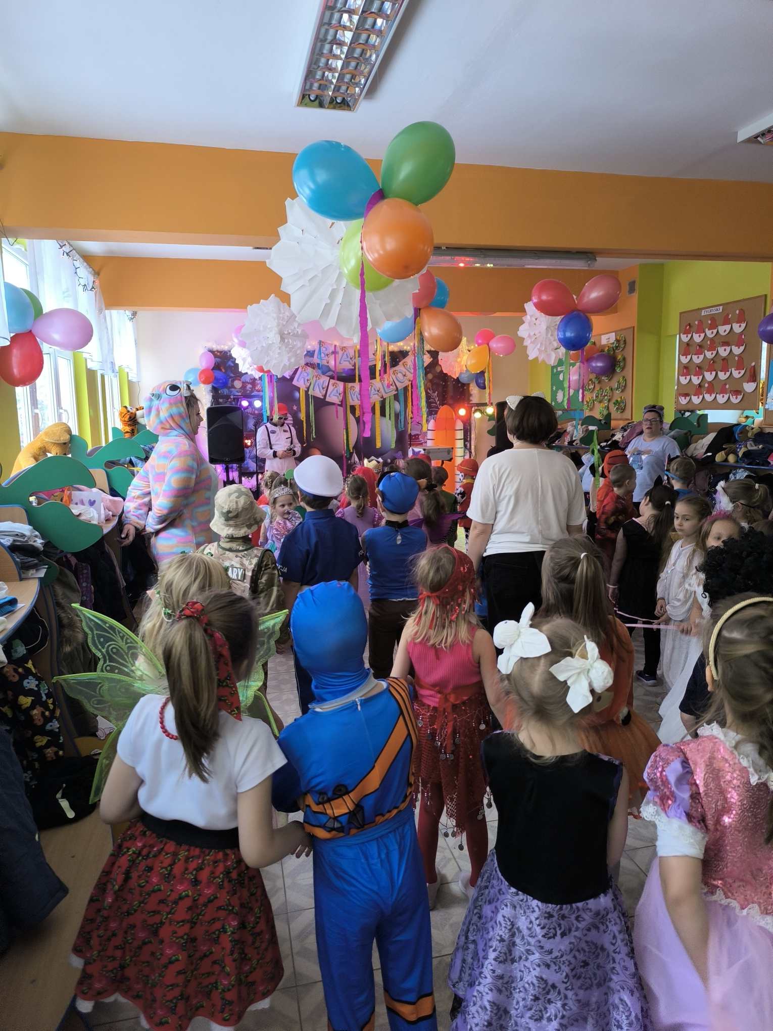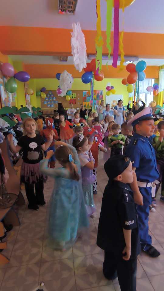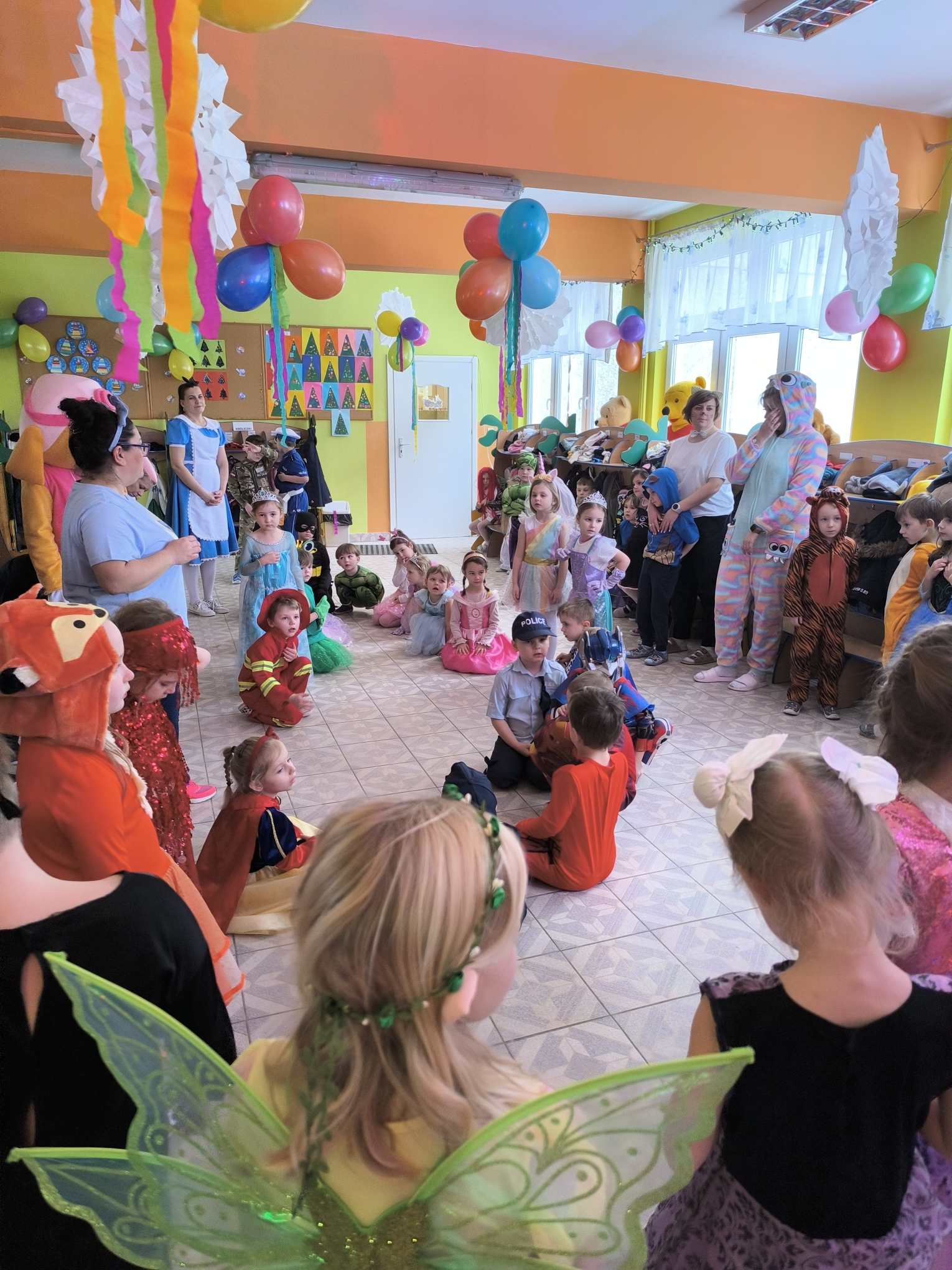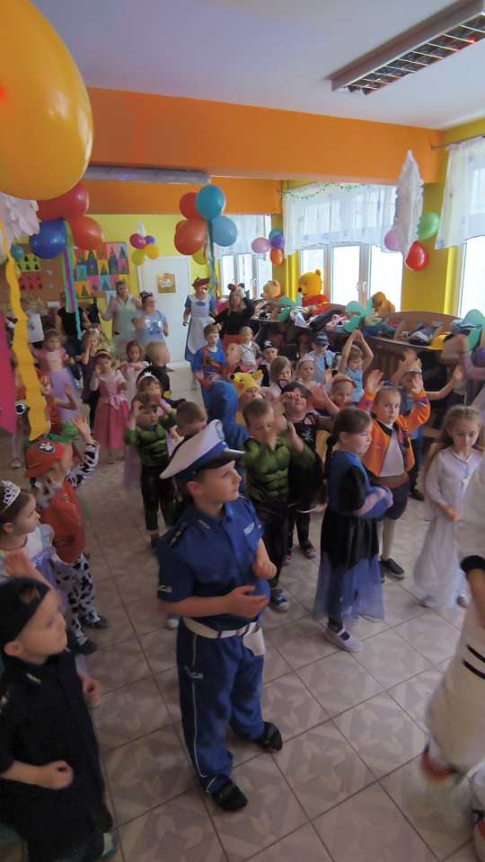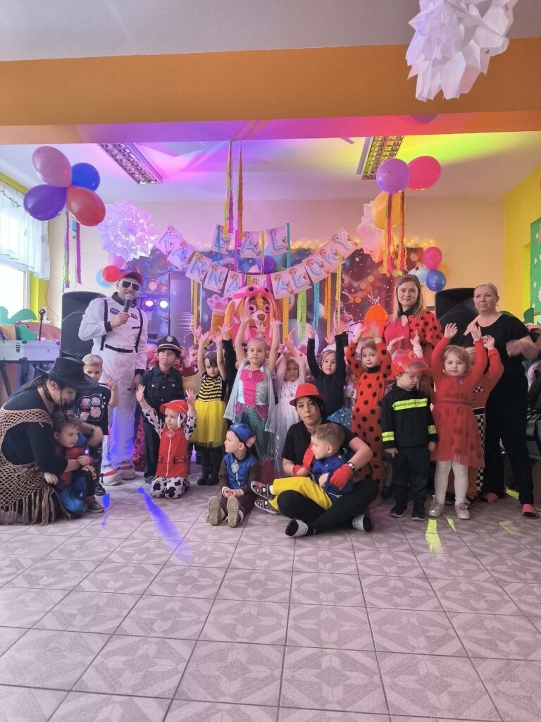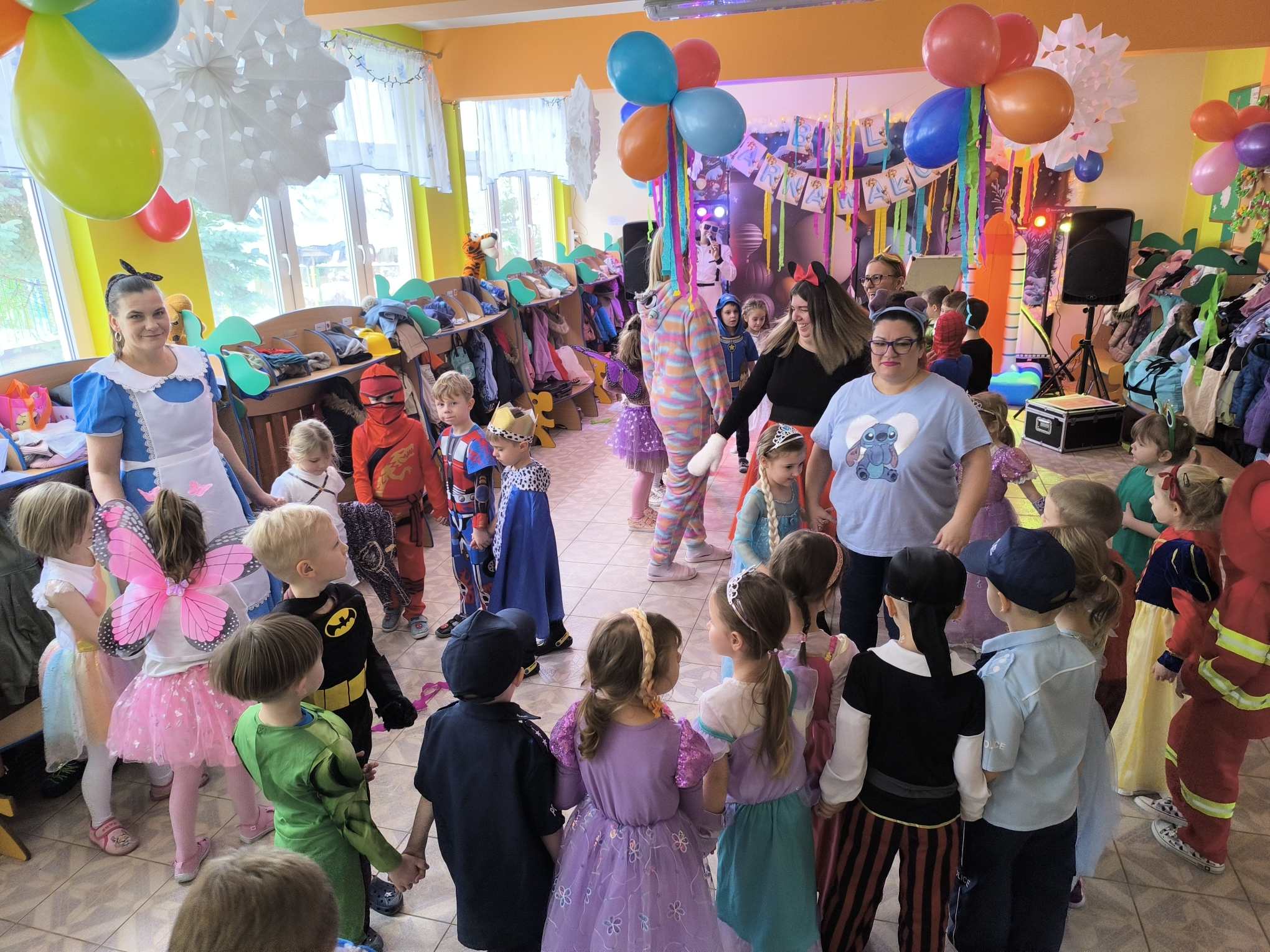 Dzieci były przepięknie i bardzo pomysłowo przebrane, a na sali królowały uśmiechy, tańce i radosny śmiech. Nie brakowało wspólnych zabaw, muzyki i pozytywnej energii – wszyscy bawili się znakomicie!