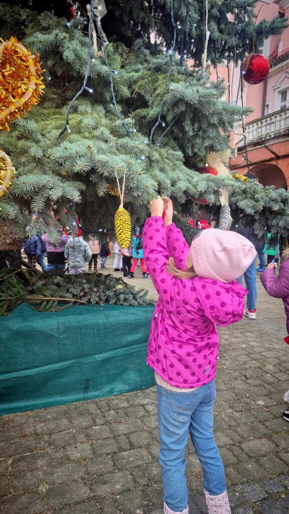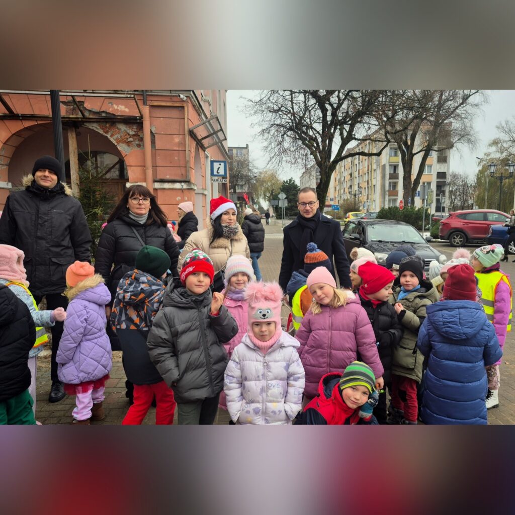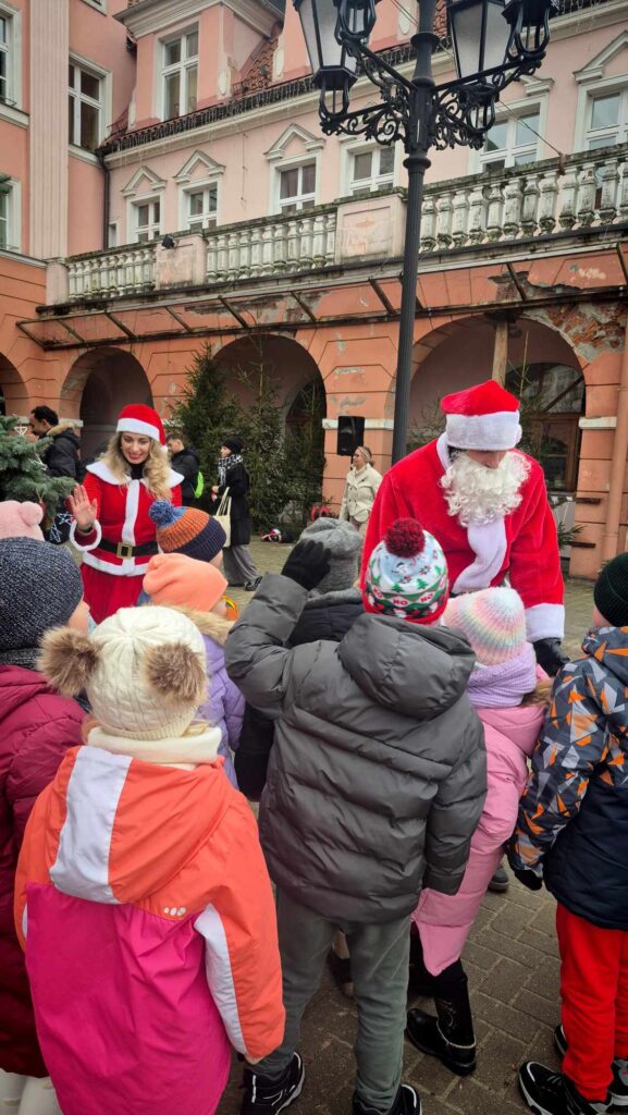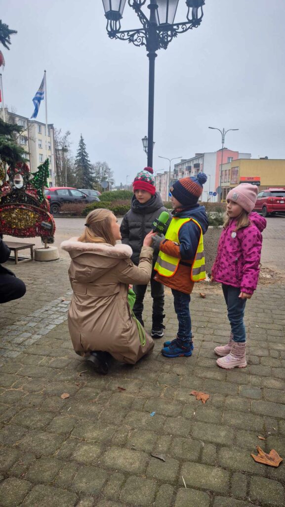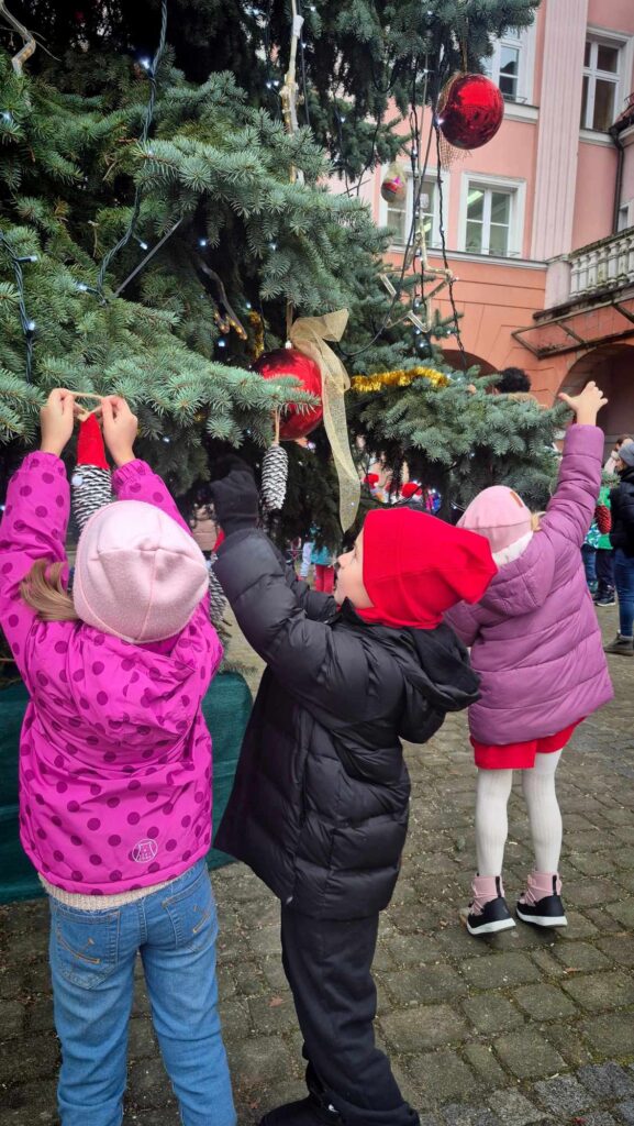 Pod ratuszem w Iławie zapanował wyjątkowy, świąteczny nastrój. Puchatki z naszego przedszkola z ogromnym zaangażowaniem stroiły wielką choinkę, która już z daleka przyciągała wzrok kolorowymi bombkami i błyszczącymi światełkami. Dzieci z radością zawieszały własnoręcznie przygotowane ozdoby, a każda z nich dodawała drzewku jeszcze więcej magii.W powietrzu unosiły się melodie świątecznych piosenek. Pan Burmistrz Iławy Dawid Kopaczewski przywitał nas bardzo ciepło, doceniając dziecięcą energię i trud włożony w przygotowanie dekoracji. Z uśmiechem częstował dzieci cukierkami, co wywołało mnóstwo radości.Po udekorowaniu choinki przyszła pora na pamiątkowe zdjęcia. Chłopcy z naszej grupy mieli okazję udzielić także wywiadu dla KLIK Iława dla Was. Dzieci chętnie pozowały, dumne ze swojego dzieła i zadowolone z tak miło spędzonego czasu. To był naprawdę wyjątkowy, pełen ciepła i świątecznego ducha dzień, który na długo pozostanie w naszej pamięci.