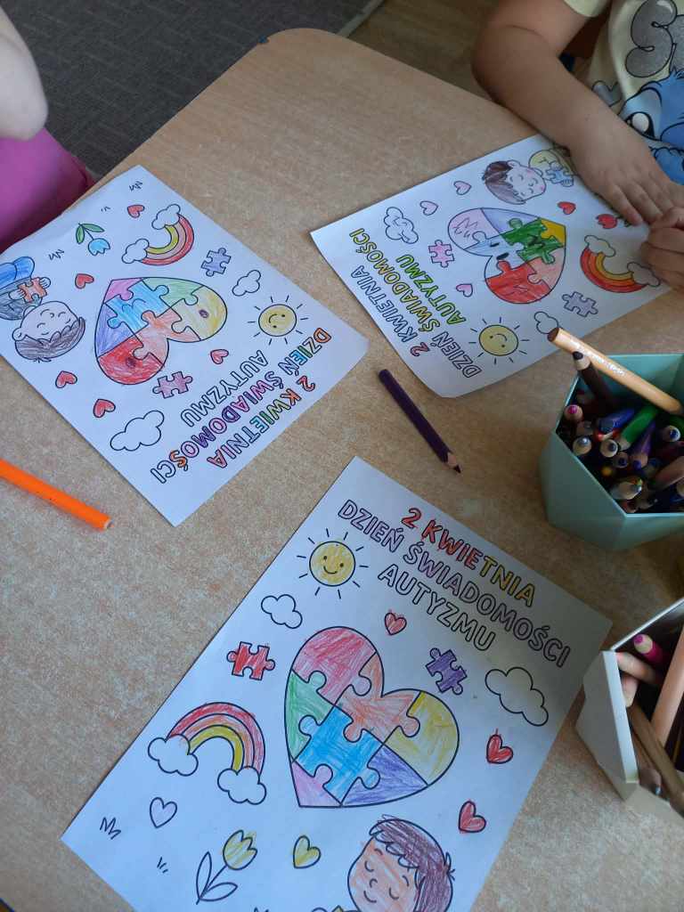 To był wyjątkowy dzień pełen ważnych rozmów, wspólnej zabawy i nauki empatii. Dzieci wzięły udział w uroczystym przemarszu, okazując wsparcie i solidarność z osobami w spektrum autyzmu. Nie zabrakło również kreatywnych działań – powstały piękne prace plastyczne, które pokazały, jak dzieci rozumieją różnorodność i akceptację.
