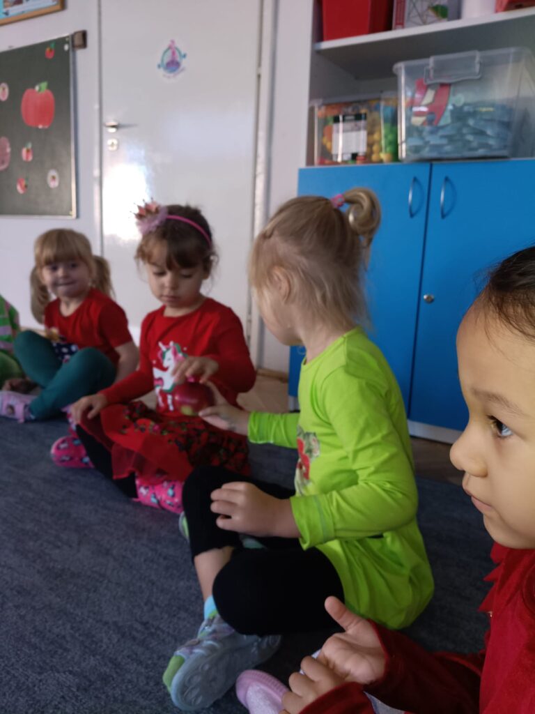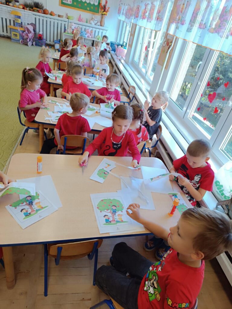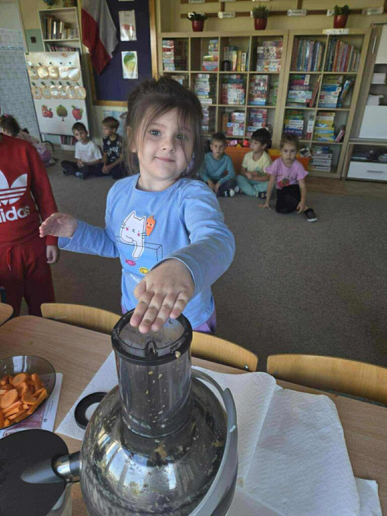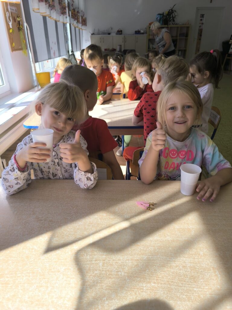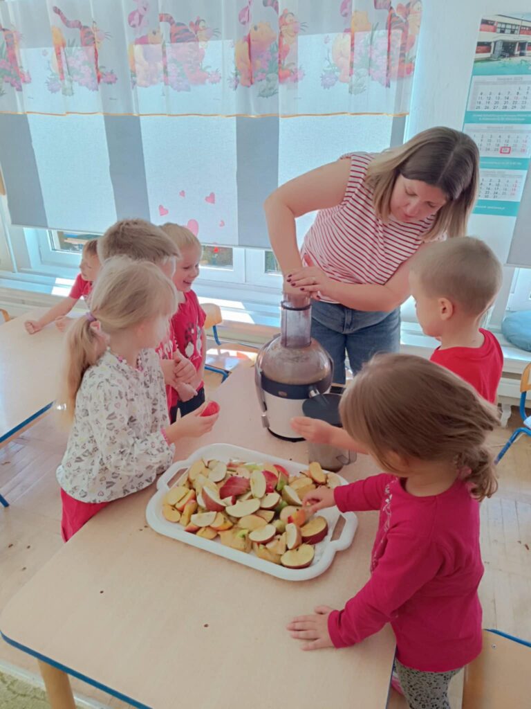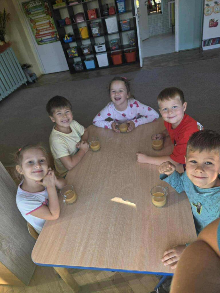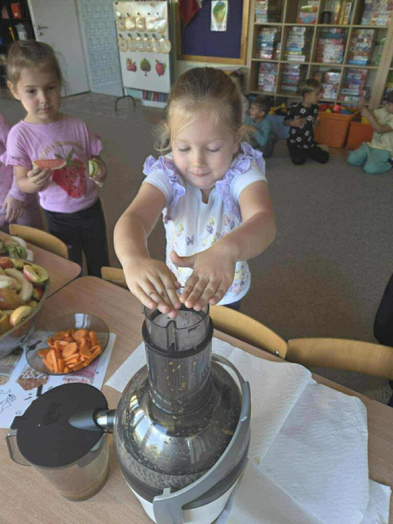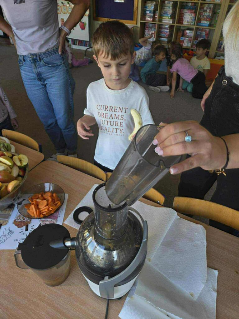 Dziś grupy Sówki, Króliczki i Tygryski świętowały Dzień Jabłka! 🍎Z tej okazji dzieci brały udział w różnorodnych zabawach plastycznych i ruchowych, poznając przy tym walory zdrowotne jabłek. Nie zabrakło także wspólnego przygotowywania pysznych, świeżo wyciskanych soków jabłkowych – było zdrowo, smacznie i bardzo wesoło!