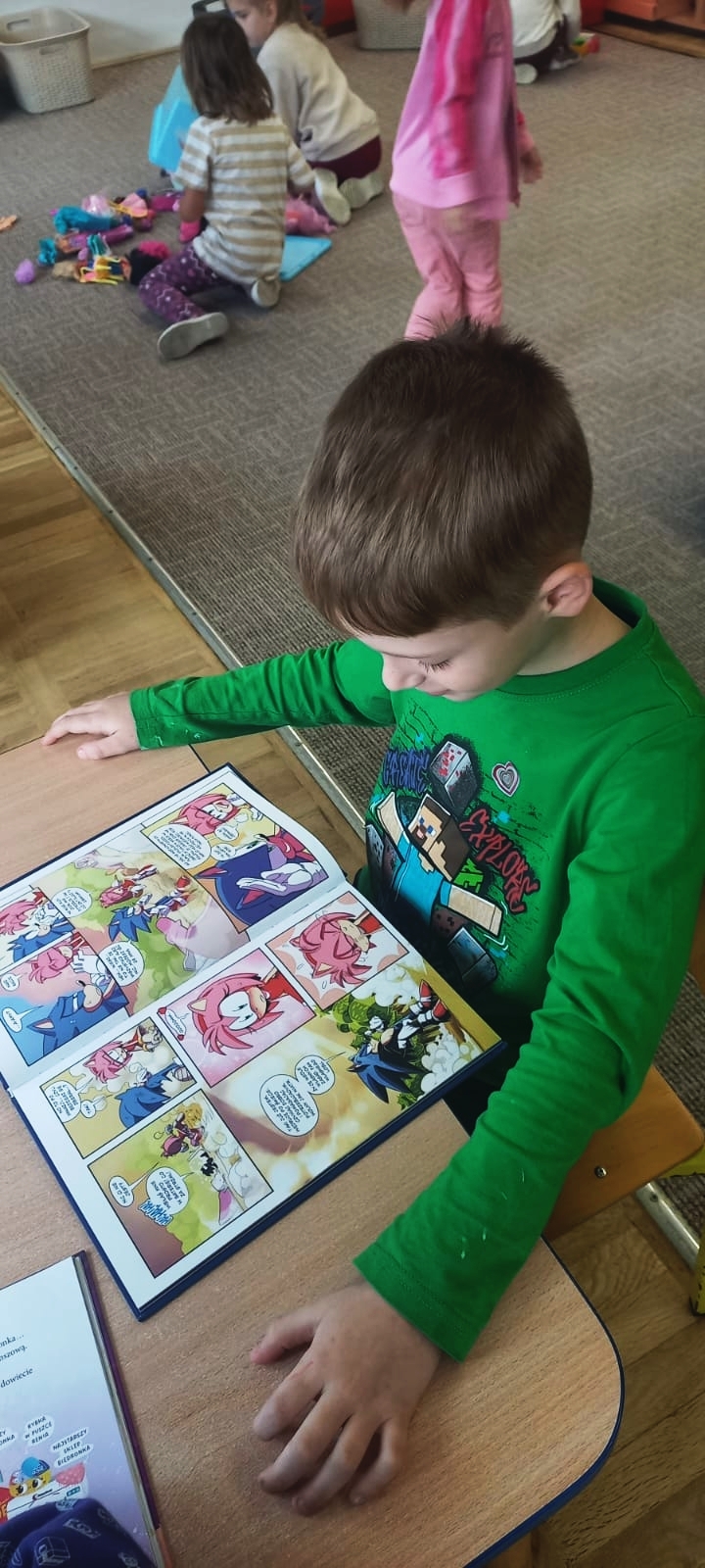 W tym tygodniu obchodziliśmy w naszym przedszkolu Ogólnopolski Dzień Głośnego Czytania. Z tej okazji dzieci przynosiły do przedszkola swoje ulubione książeczki, o których z entuzjazmem opowiadały koleżankom i kolegom. Puchatki wspólnie stworzyły kącik książki. Panie nauczycielki czytały dzieciom w grupach wybrane opowieści, a słuchaniu towarzyszyła miła, skupiona atmosfera. Króliczki zapoczątkowały projekt edukacyjny Mały „Miś w Świecie Wielkiej Literatury”. Przedszkolaki z ciekawością przeglądały różne książki, odkrywając nowe historie i bohaterów. To był czas pełen radości, inspiracji i wspólnego przeżywania literackich przygód!