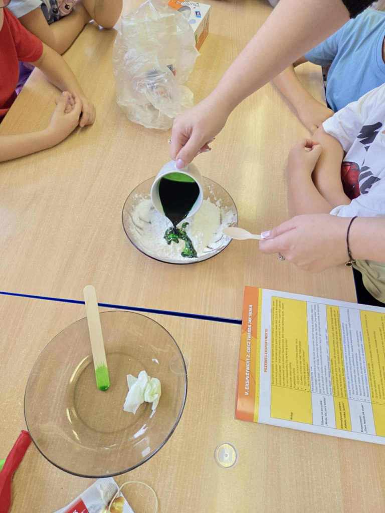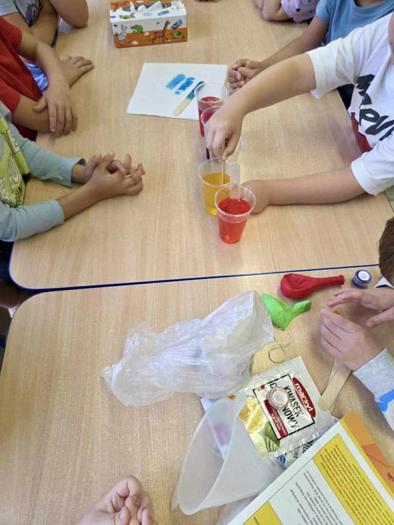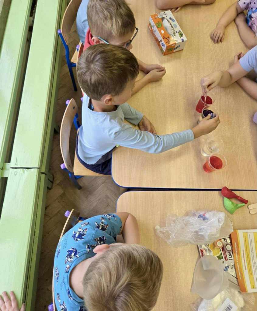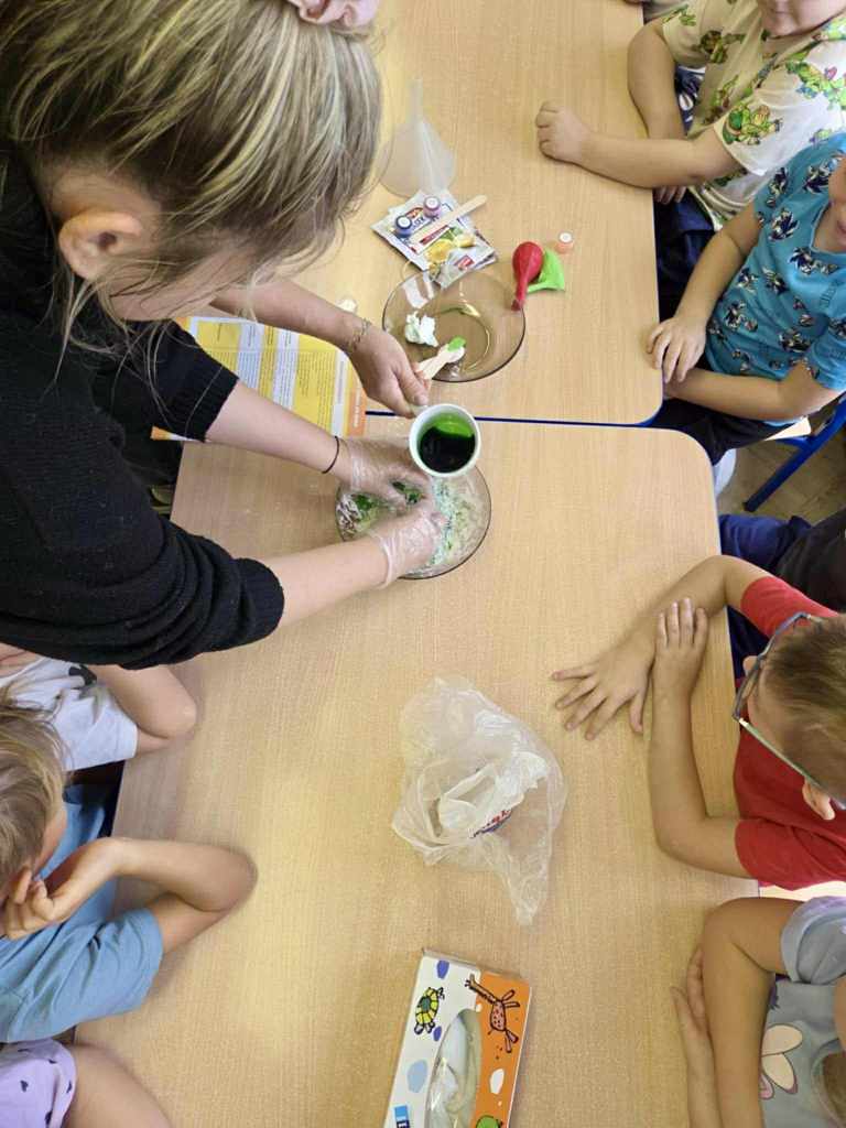 W ramach zajęć mali odkrywcy mieli okazję wcielić się w rolę naukowców i samodzielnie przeprowadzać ciekawe eksperymenty. Dzieci z entuzjazmem sprawdzały, jak powstają różne reakcje chemiczne, odkrywały właściwości znanych substancji oraz uczyły się poprzez zabawę i doświadczenie.Była to doskonała okazja do rozwijania ciekawości świata, kreatywności i umiejętności logicznego myślenia. Eksperymenty dostarczyły wszystkim uczestnikom mnóstwo radości i niezapomnianych wrażeń!