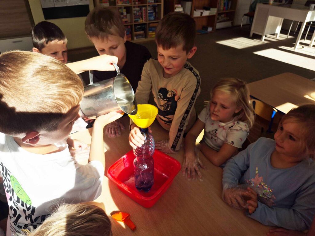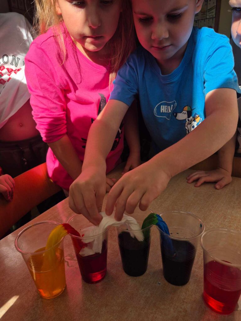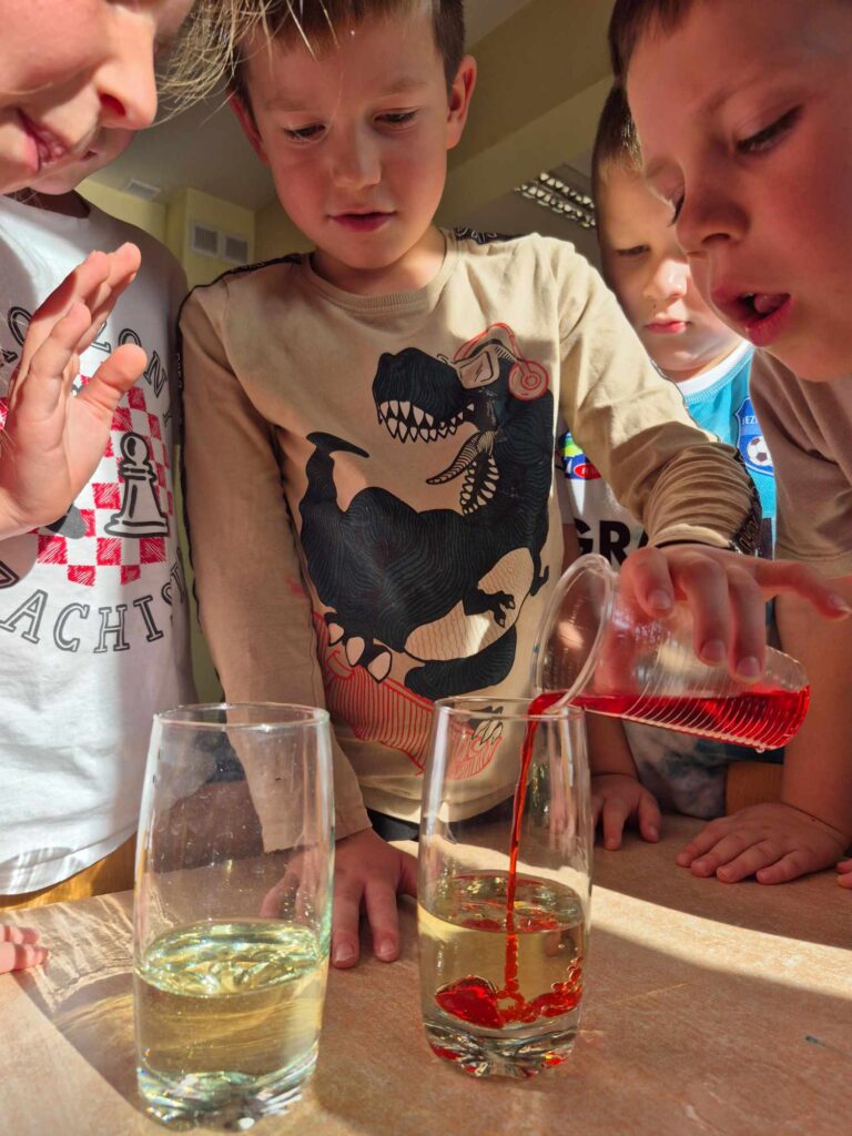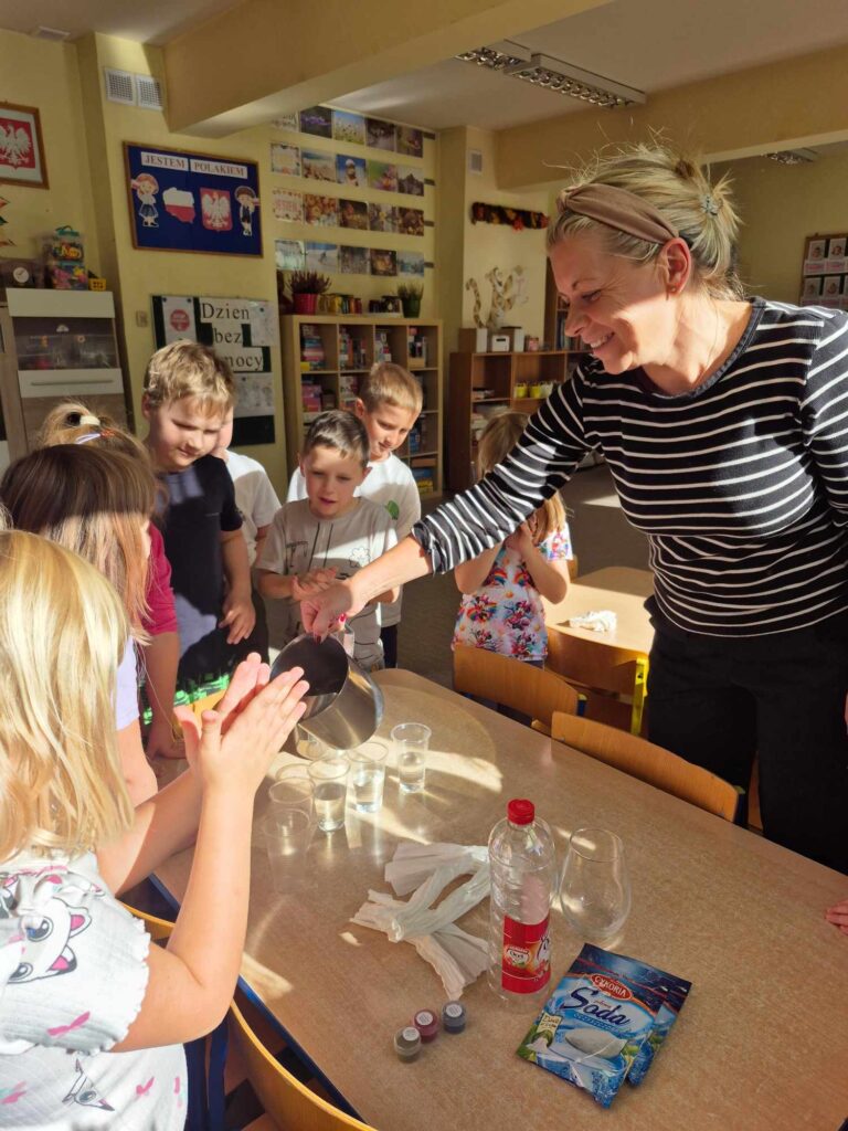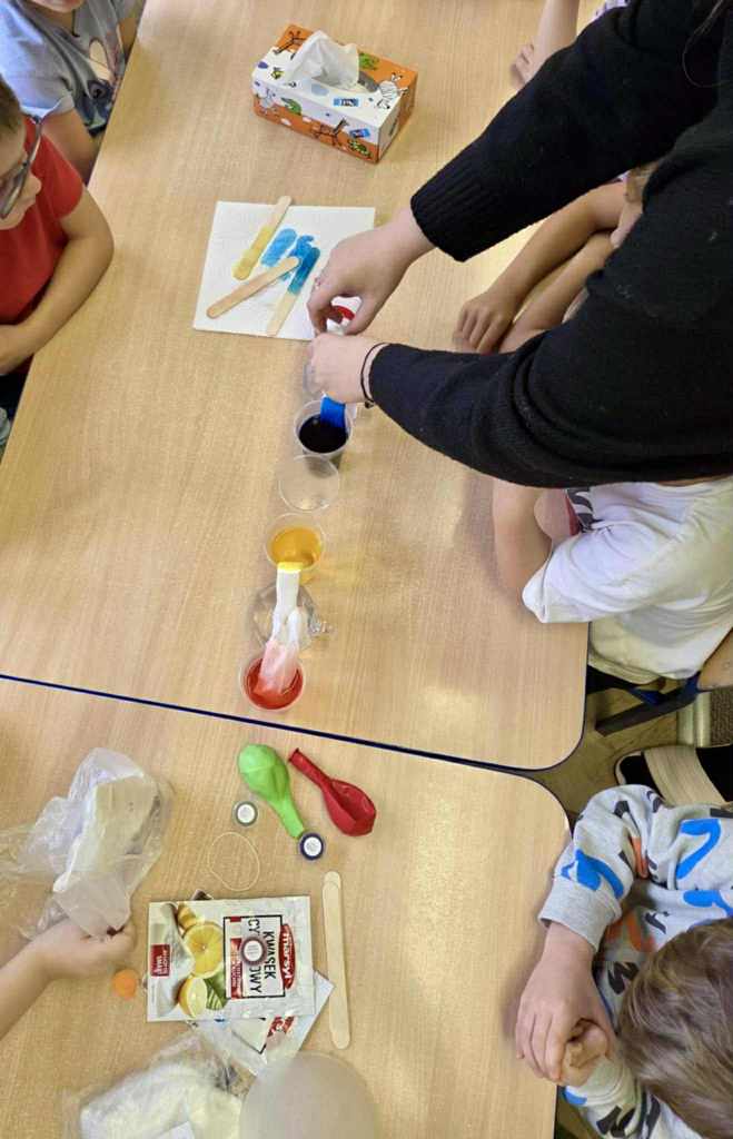 W ramach zajęć mali odkrywcy mieli okazję wcielić się w rolę naukowców i samodzielnie przeprowadzać ciekawe eksperymenty. Dzieci z entuzjazmem sprawdzały, jak powstają różne reakcje chemiczne, odkrywały właściwości znanych substancji oraz uczyły się poprzez zabawę i doświadczenie.Była to doskonała okazja do rozwijania ciekawości świata, kreatywności i umiejętności logicznego myślenia. Eksperymenty dostarczyły wszystkim uczestnikom mnóstwo radości i niezapomnianych wrażeń!