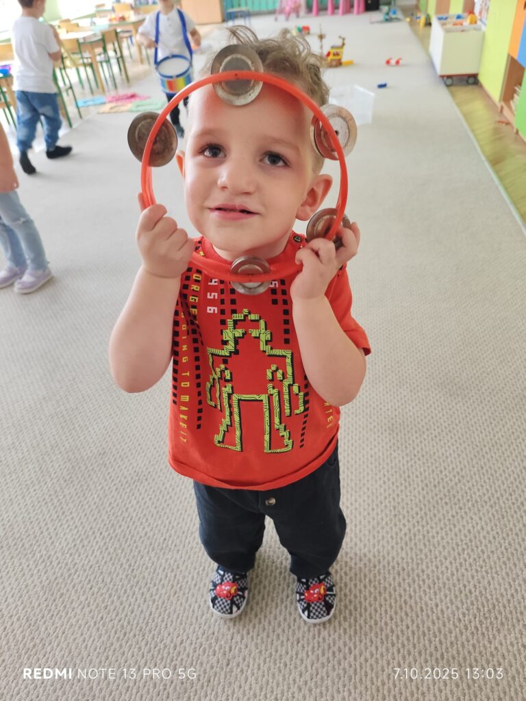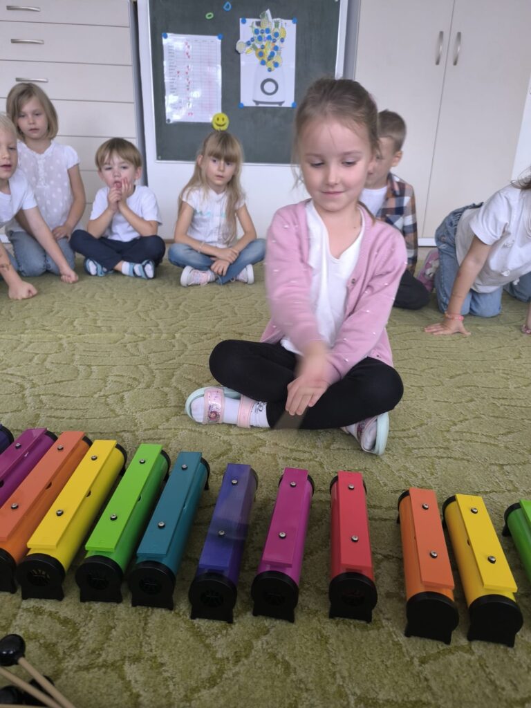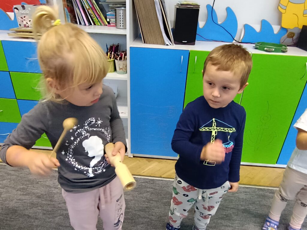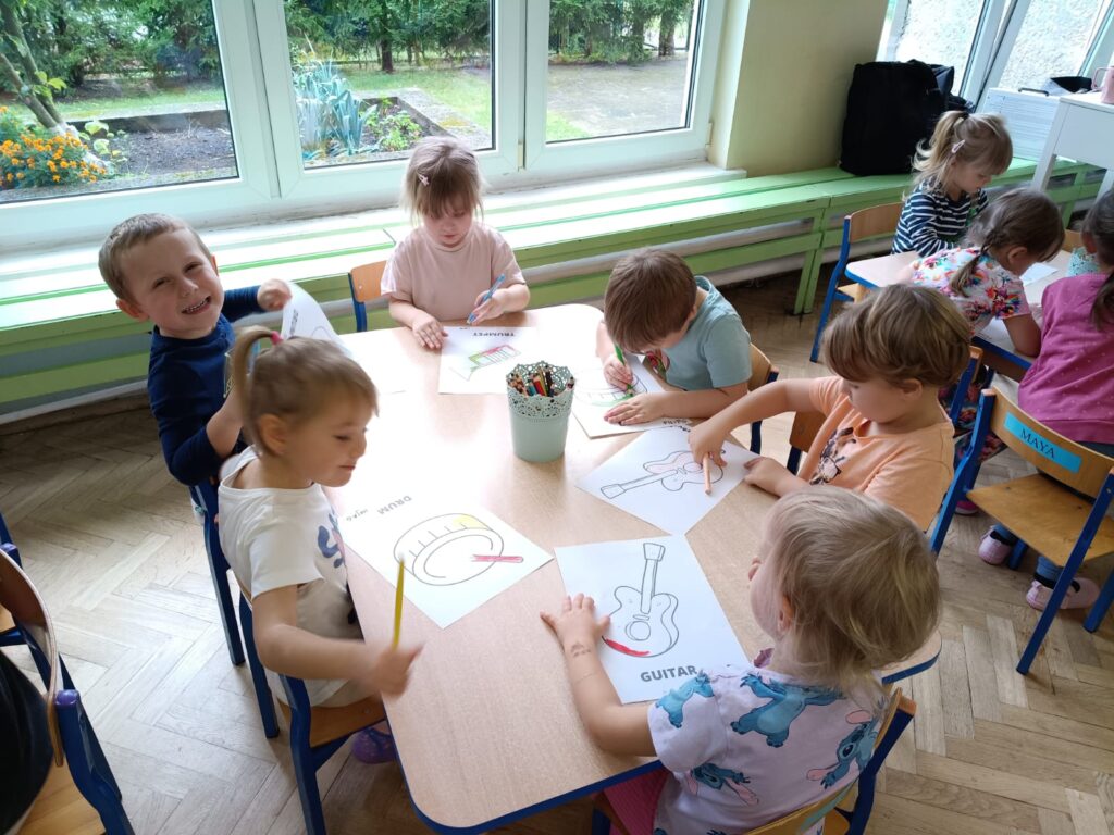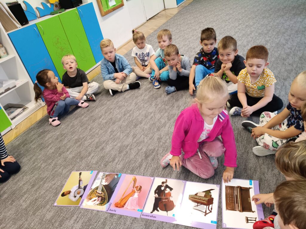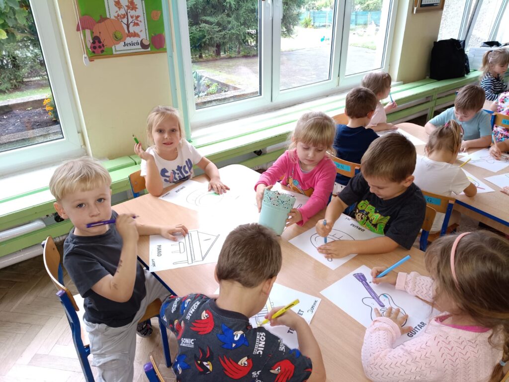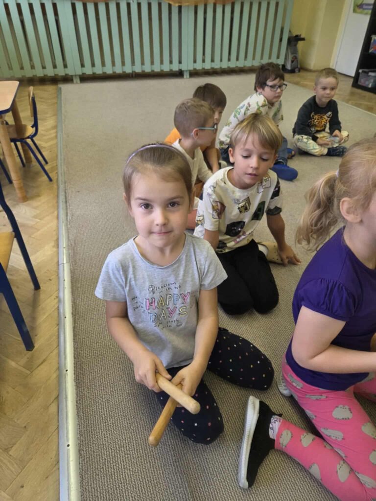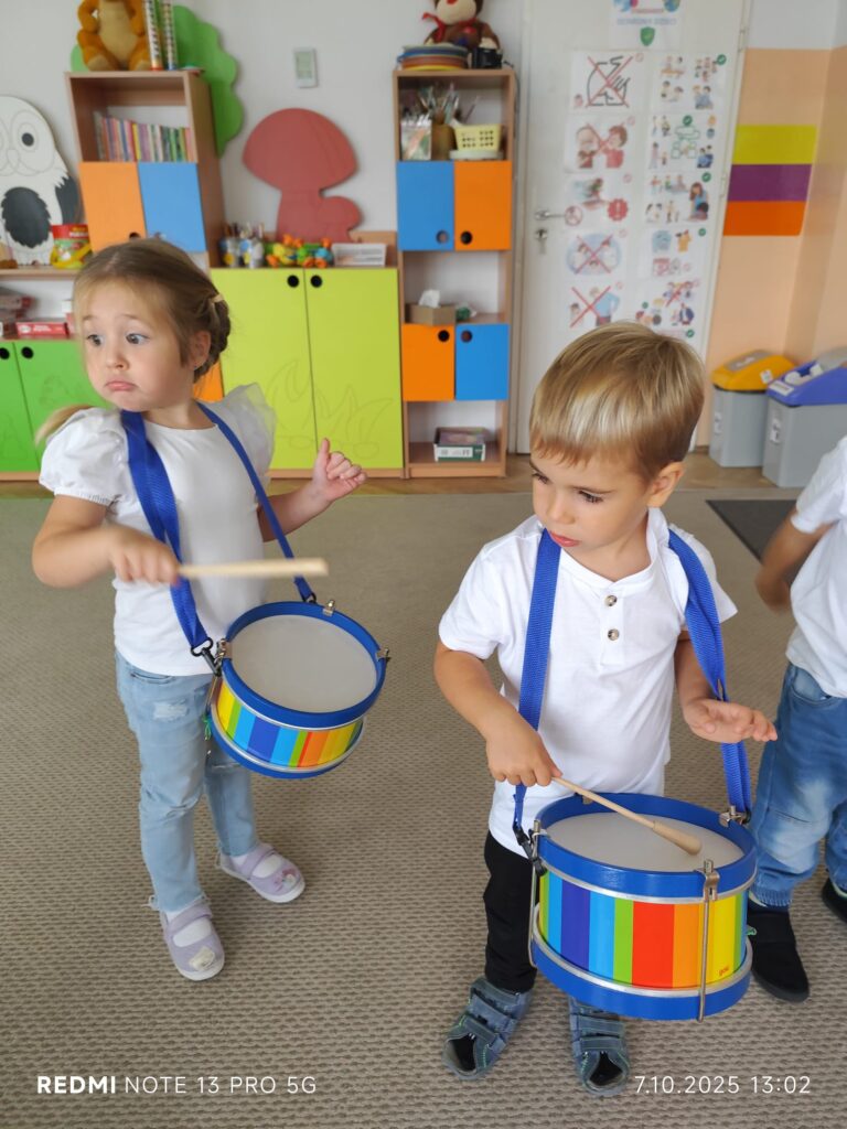 Z okazji Dnia Muzyki dzieci ze wszystkich grup wzięły udział w radosnych, muzycznych zajęciach. Przedszkolaki utrwalały nazwy instrumentów, tworzyły własne instrumenty z materiałów recyklingowych — m.in. z pudełek po jogurtach — oraz wspólnie grały, śpiewały i tańczyły. Było głośno, kreatywnie i bardzo wesoło! Ten dzień dostarczył wszystkim mnóstwo muzycznej radości i inspiracji.