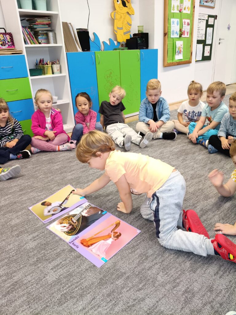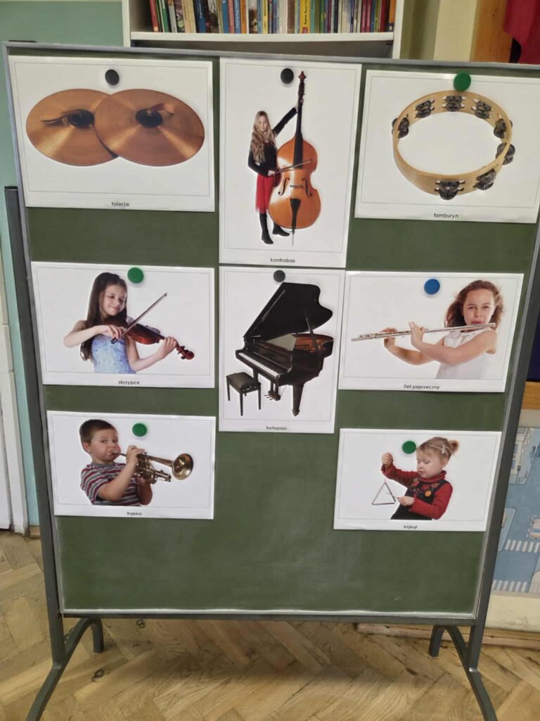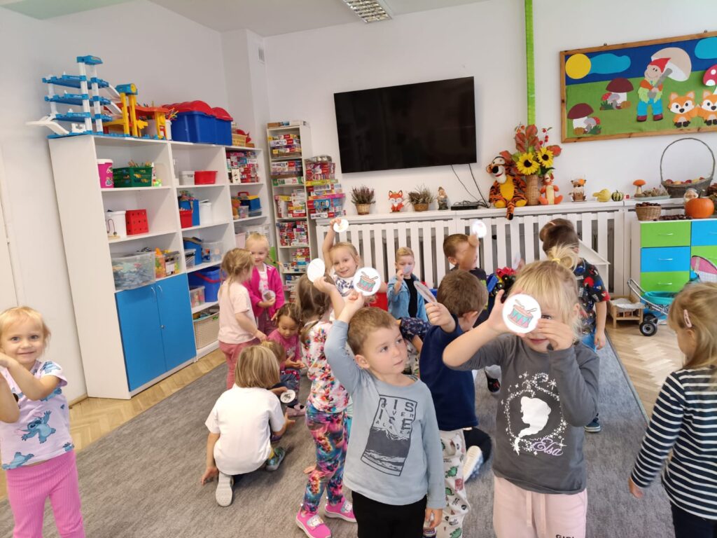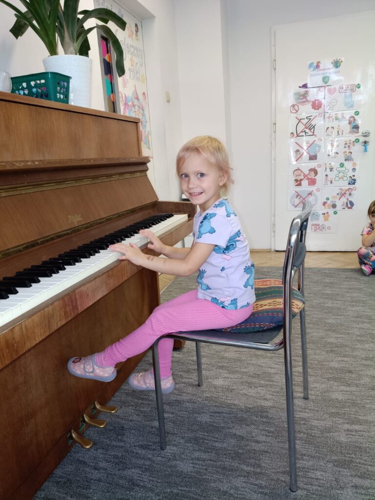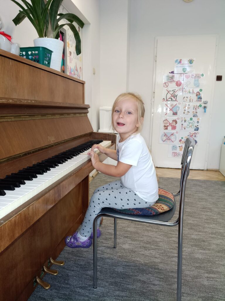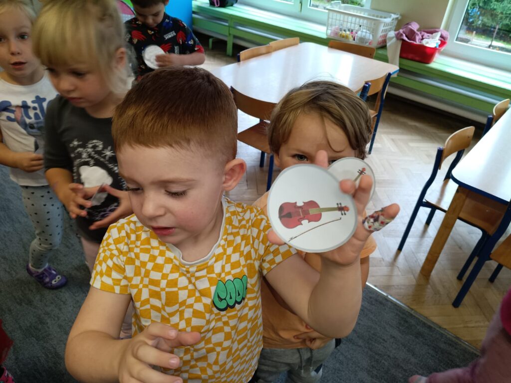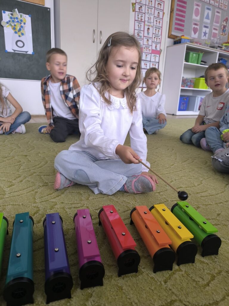 Z okazji Dnia Muzyki dzieci ze wszystkich grup wzięły udział w radosnych, muzycznych zajęciach. Przedszkolaki utrwalały nazwy instrumentów, tworzyły własne instrumenty z materiałów recyklingowych — m.in. z pudełek po jogurtach — oraz wspólnie grały, śpiewały i tańczyły. Było głośno, kreatywnie i bardzo wesoło! Ten dzień dostarczył wszystkim mnóstwo muzycznej radości i inspiracji.