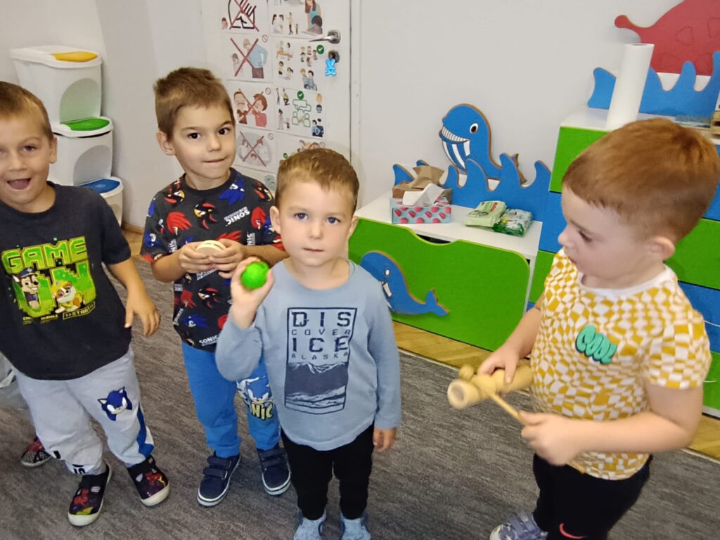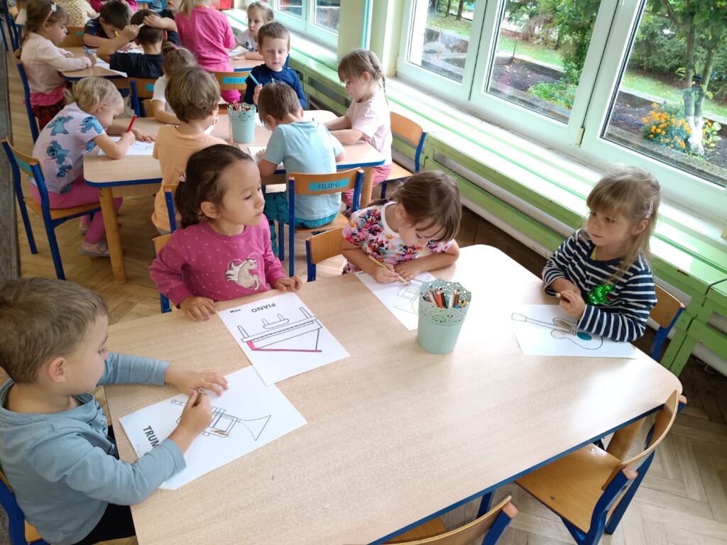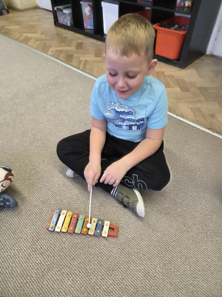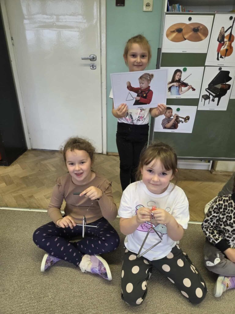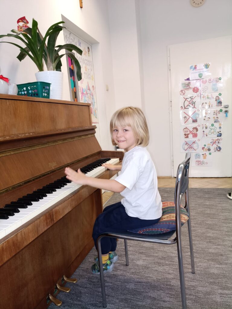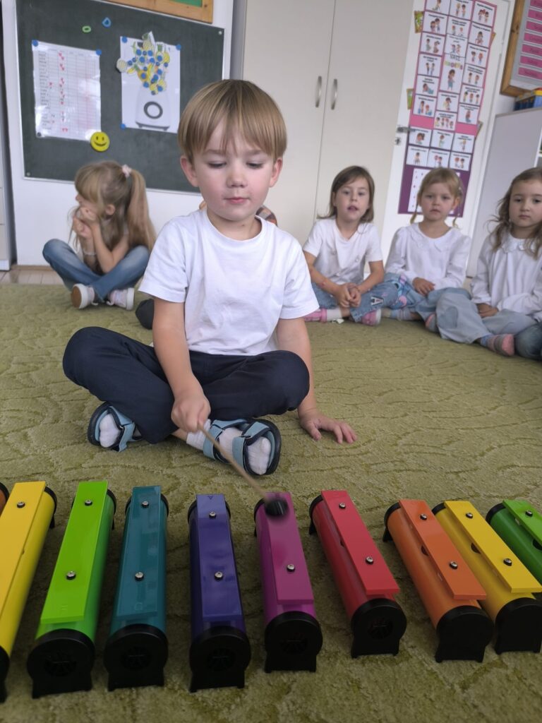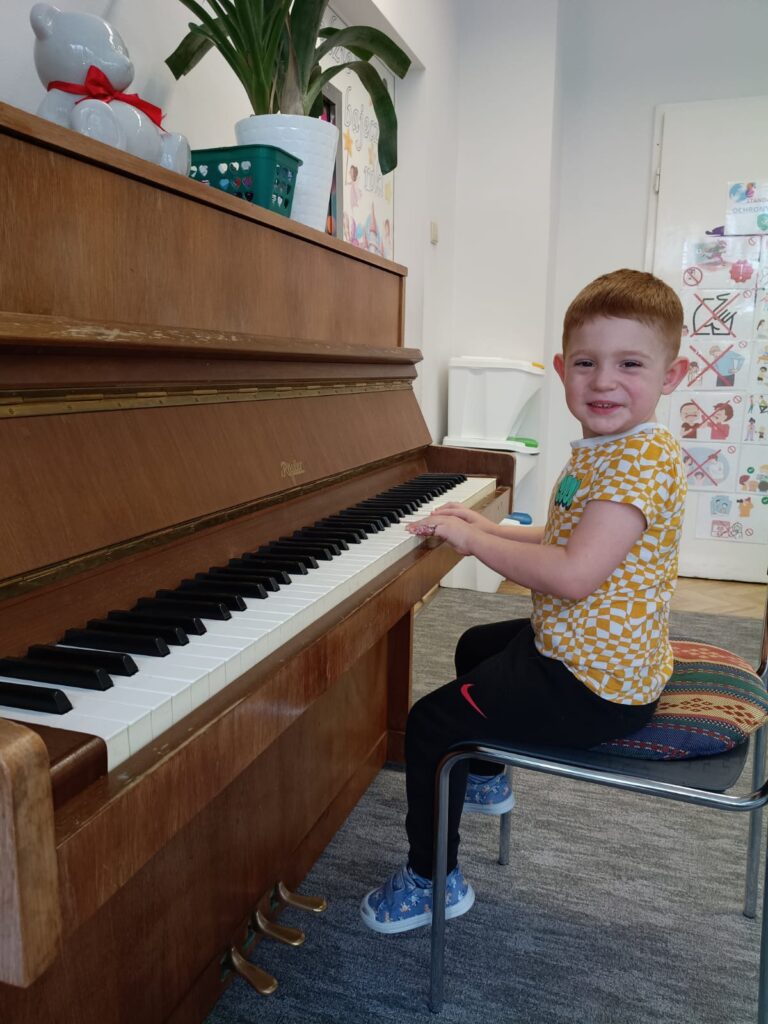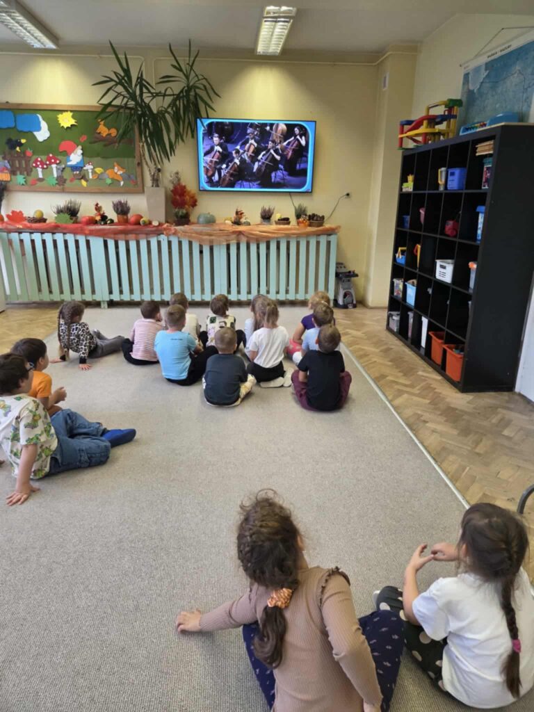 Z okazji Dnia Muzyki dzieci ze wszystkich grup wzięły udział w radosnych, muzycznych zajęciach. Przedszkolaki utrwalały nazwy instrumentów, tworzyły własne instrumenty z materiałów recyklingowych — m.in. z pudełek po jogurtach — oraz wspólnie grały, śpiewały i tańczyły. Było głośno, kreatywnie i bardzo wesoło! Ten dzień dostarczył wszystkim mnóstwo muzycznej radości i inspiracji.