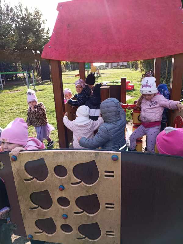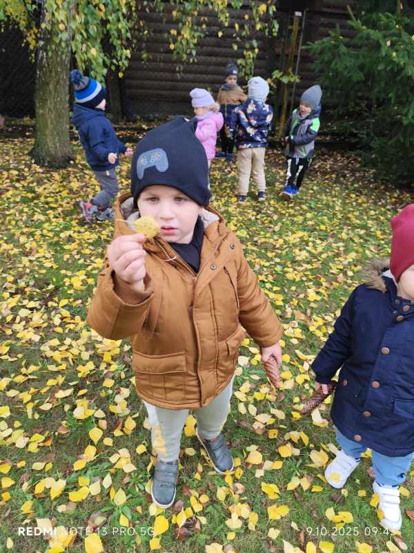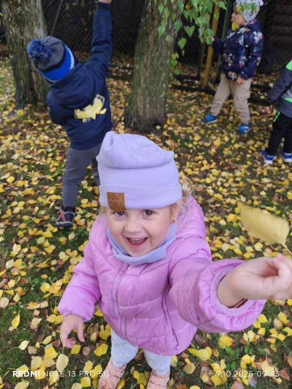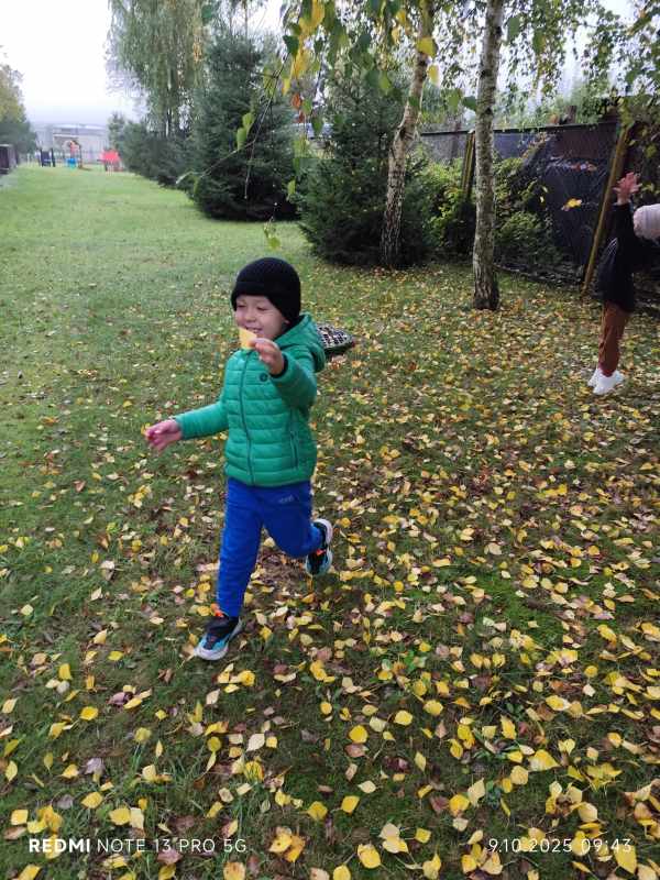Nasze przedszkolaki uwielbiają jesienną pogodę! Żaden deszczyk ani chłodniejszy wiatr nie jest im straszny. Z wielką radością wychodzą na spacery lub spędzają czas na przedszkolnym podwórku, by podziwiać piękne, kolorowe krajobrazy.Podczas tych jesiennych wypraw dzieci obserwują zmieniającą się przyrodę, zbierają liście, kasztany i żołędzie, a także uczą się rozpoznawać oznaki nadchodzącej zimy. Takie aktywności to nie tylko świetna zabawa, ale też okazja do nauki i rozwijania ciekawości świata.Jesień w naszym przedszkolu to prawdziwa przygoda!