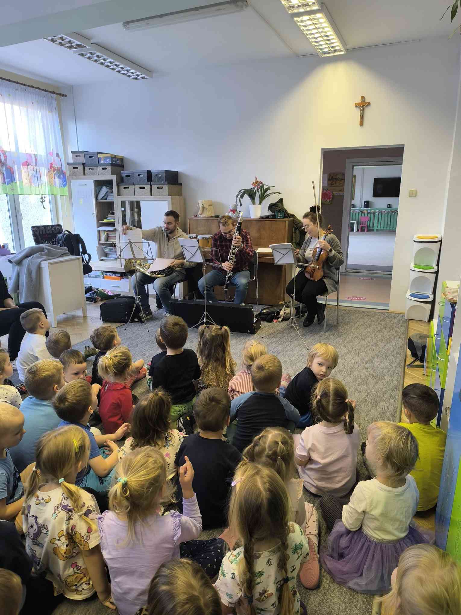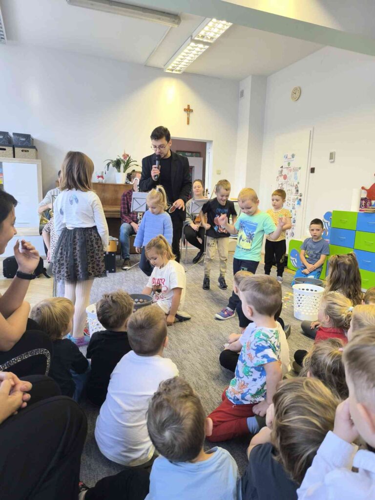 Dzisiaj w naszym przedszkolu odbył się jesienny koncert muzyków z Filharmonia Warmińsko-Mazurska im. Feliksa Nowowiejskiego w Olsztynie, poza słuchaniem muzyki odbył się konkurs, a także była okazja do przypomnienia sobie tańców takich jak „Grozik”, „Poszło dziewczę po ziele”. Jesień w naszym przedszkolu gra dziś na wesołą nutę! 🍁🥰