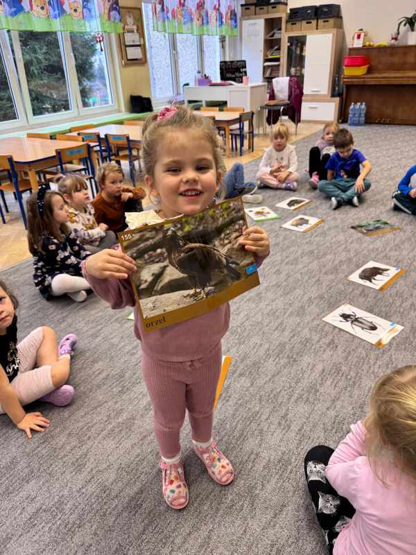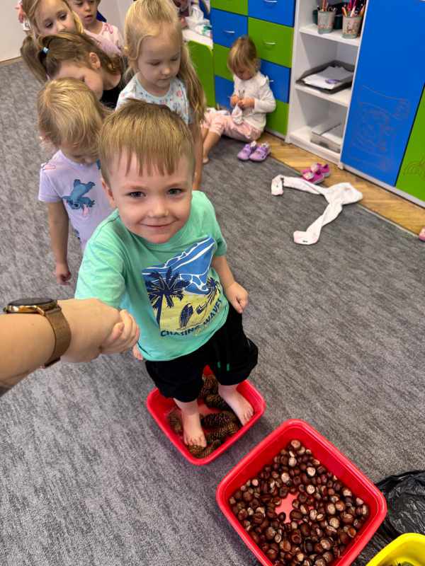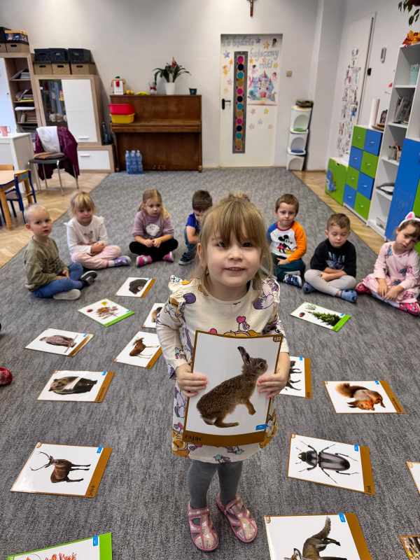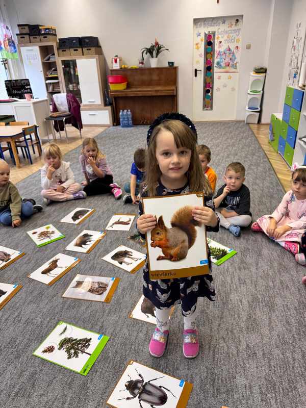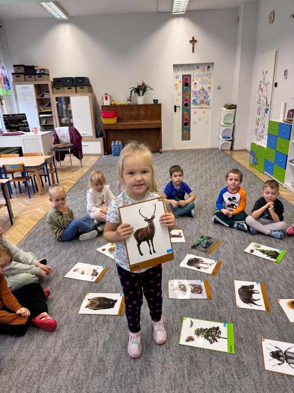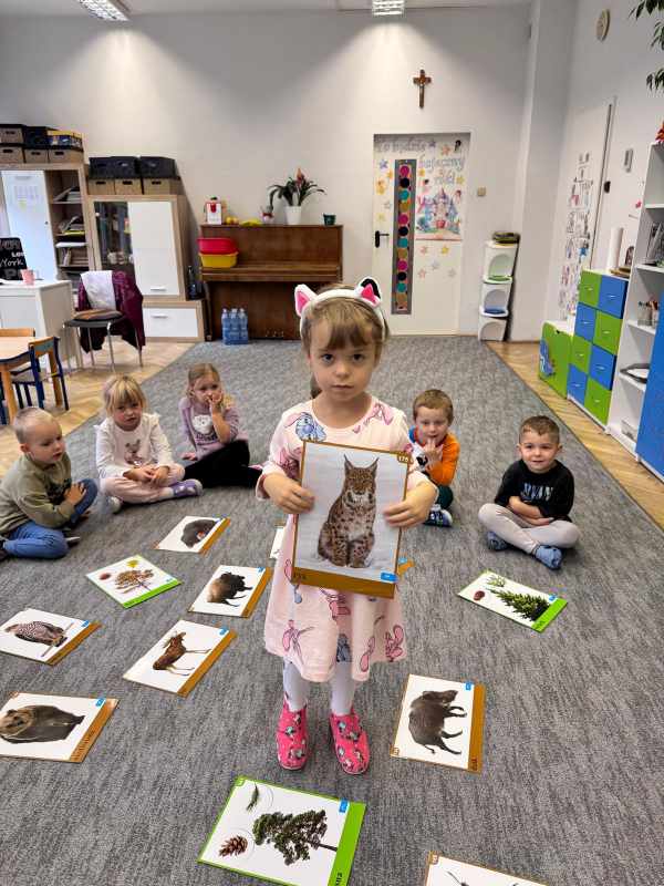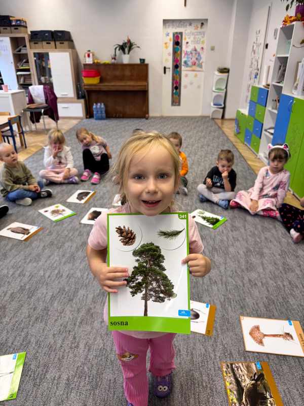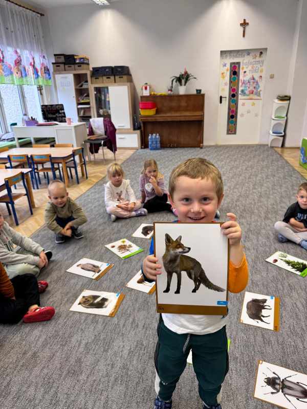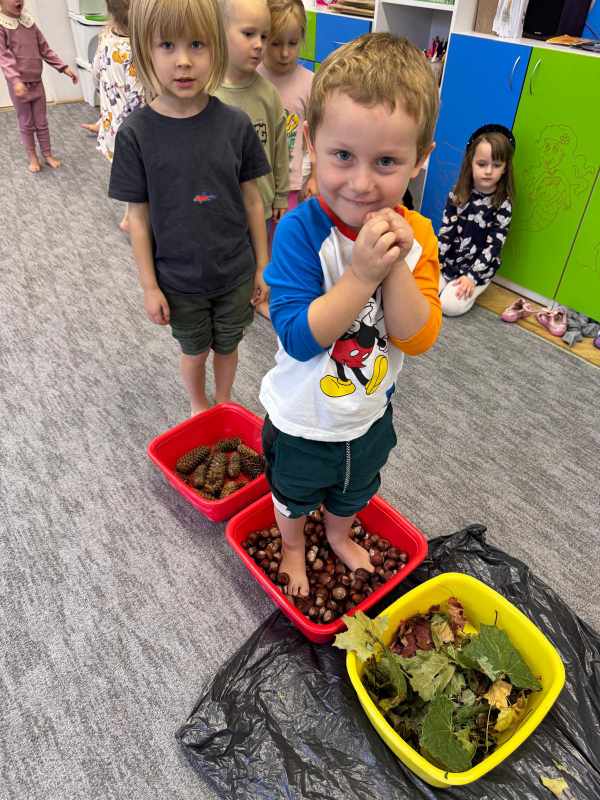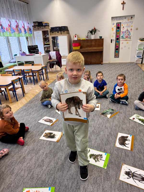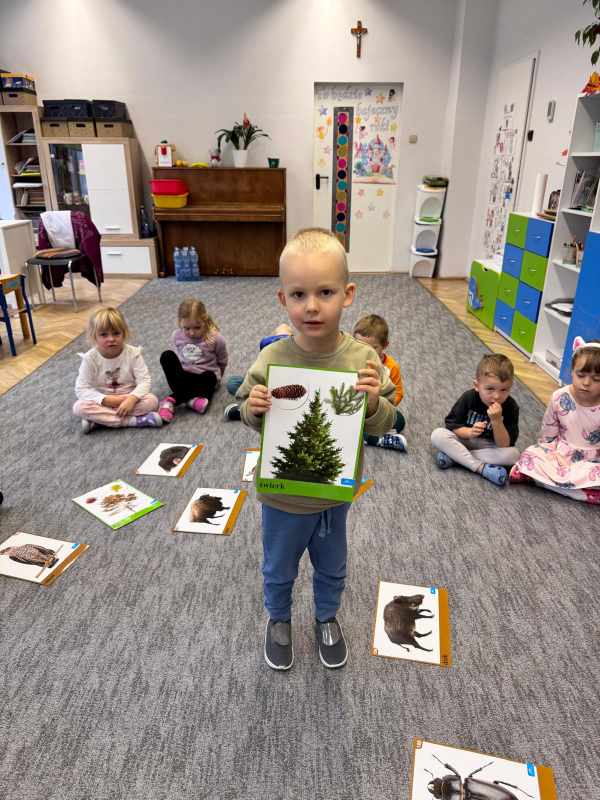 Dzisiaj dzieci z grupy Tygryski zdobywały wiadomości na temat lasu. Dzieci potrafią rozpoznać i nazwać mieszkańców lasu, roślinność leśną. Tygryski spacerowały także po leśnej ścieżce sensorycznej.