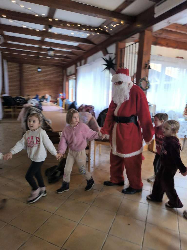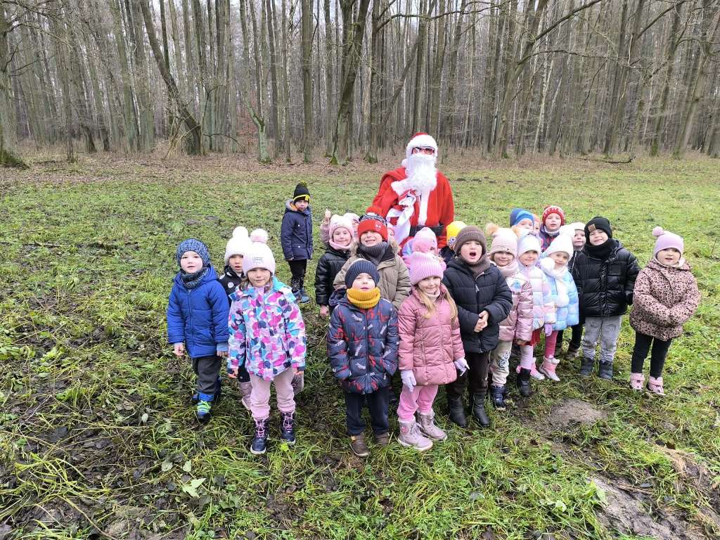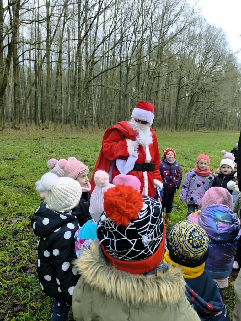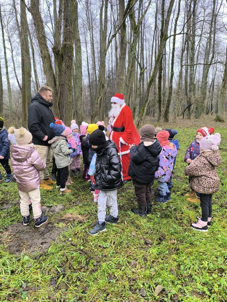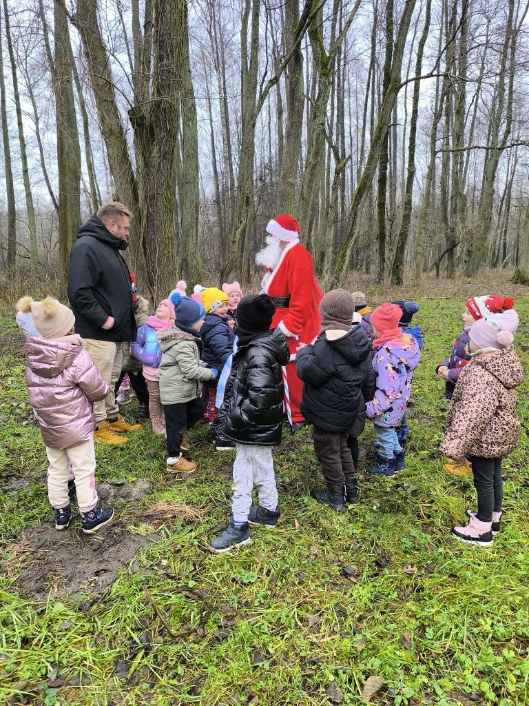 W poniedziałek z samego rana Króliczki wyruszyły na wycieczkę do Dworku Andrzejówka w Gardzieniu, gdzie czekało na nich wyjątkowe spotkanie z… samym świętym Mikołajem – a właściwie z jego synem, który z radością wcielił się w tę magiczną rolę.Dzieci brały udział w wielu fantastycznych zabawach prowadzonych przez animatora, z zaangażowaniem przygotowywały świąteczne ciasteczka, a potem wyruszyły do lasu na poszukiwania Mikołaja. Radość była ogromna, gdy udało się go odnaleźć! Każde dziecko mogło chwilę z nim porozmawiać, zrobić pamiątkowe zdjęcie oraz odebrać świąteczny upominek.Nie zabrakło także tańców, wspólnego śmiechu i mnóstwa radosnych emocji. Po zabawach Króliczki zostały poczęstowane pysznymi kiełbaskami z grilla. Przemili właściciele tego miejsca zadbali o ciepłą, serdeczną atmosferę, dzięki czemu dzieci poczuły się jak w prawdziwej świątecznej krainie.Króliczki wróciły zmęczone, ale szczęśliwe i pełne świątecznego entuzjazmu.To był naprawdę magiczny dzień!