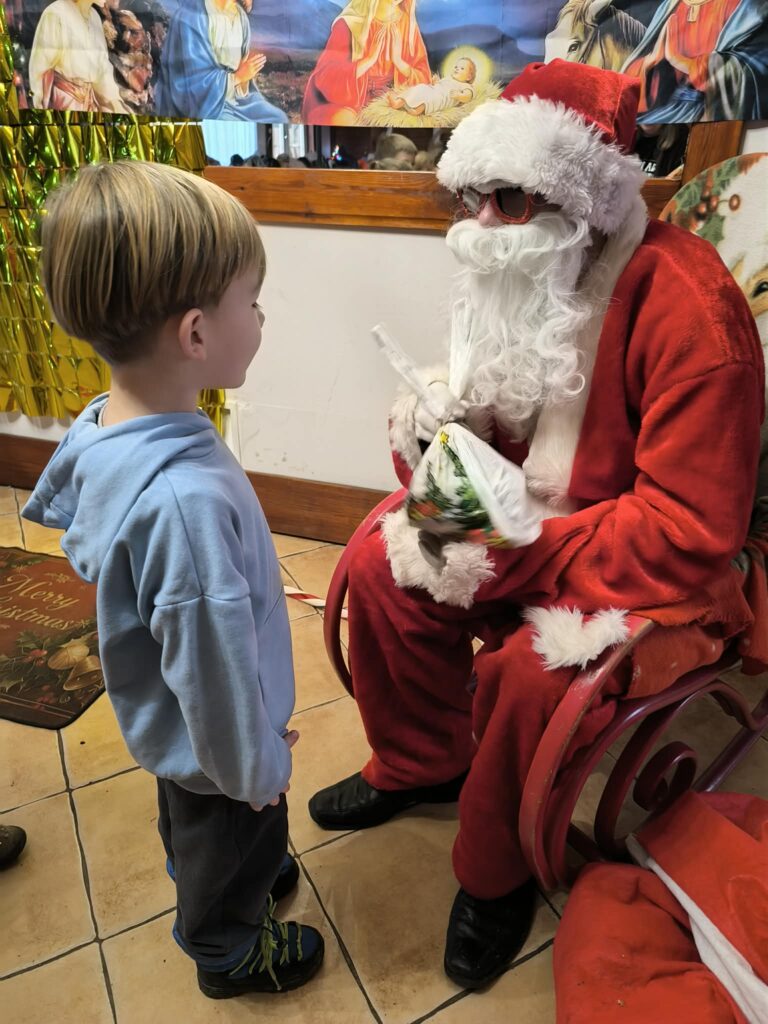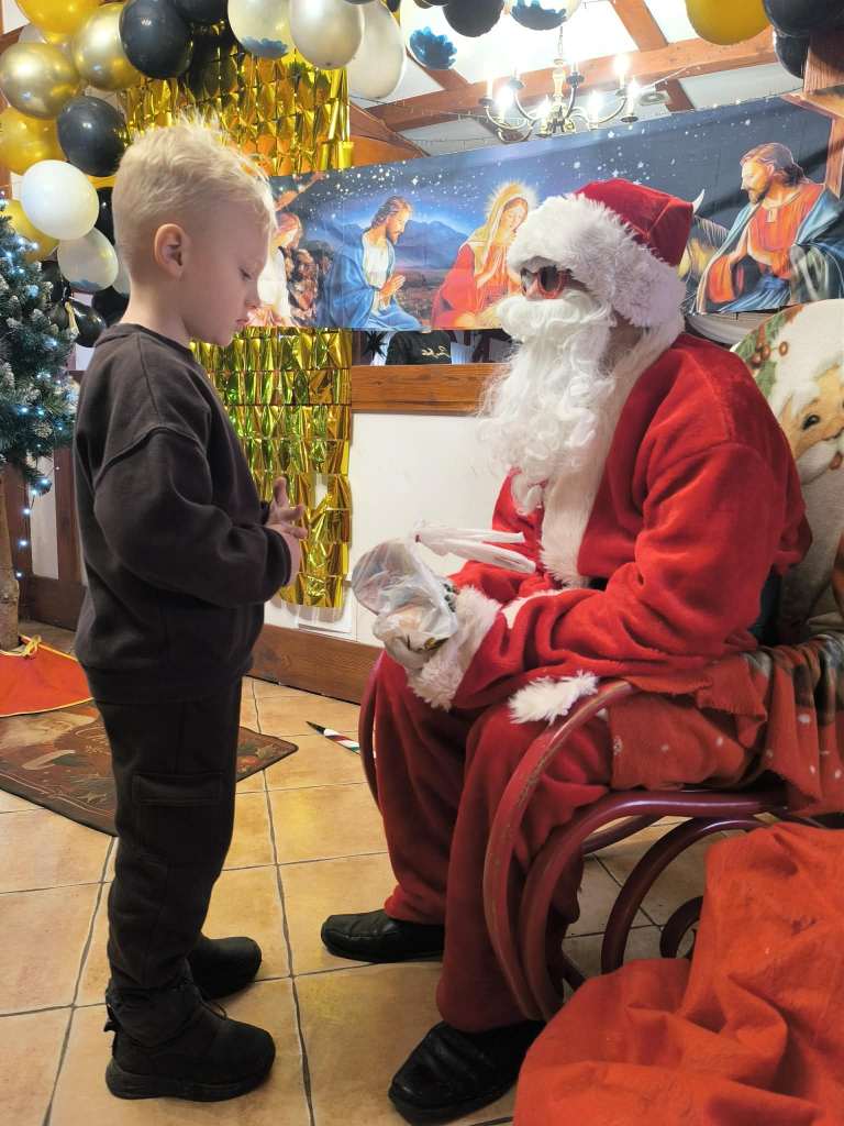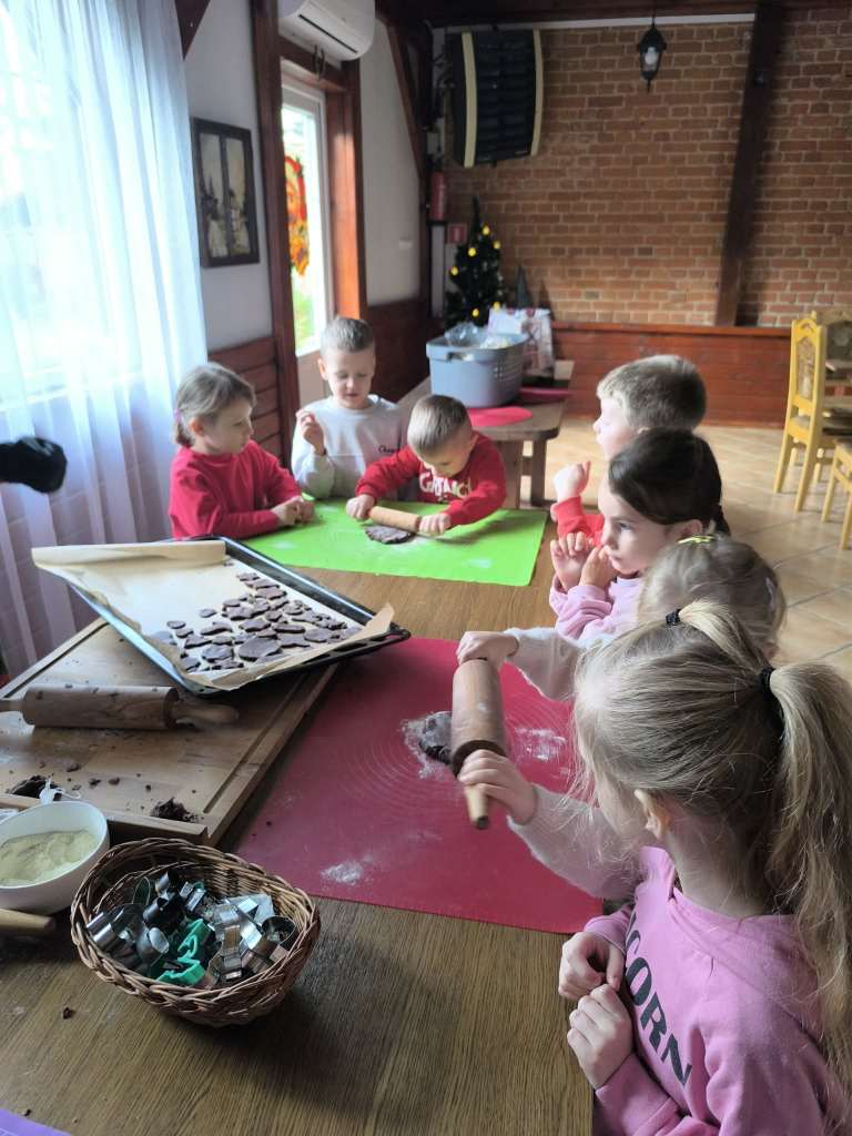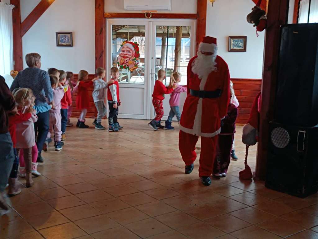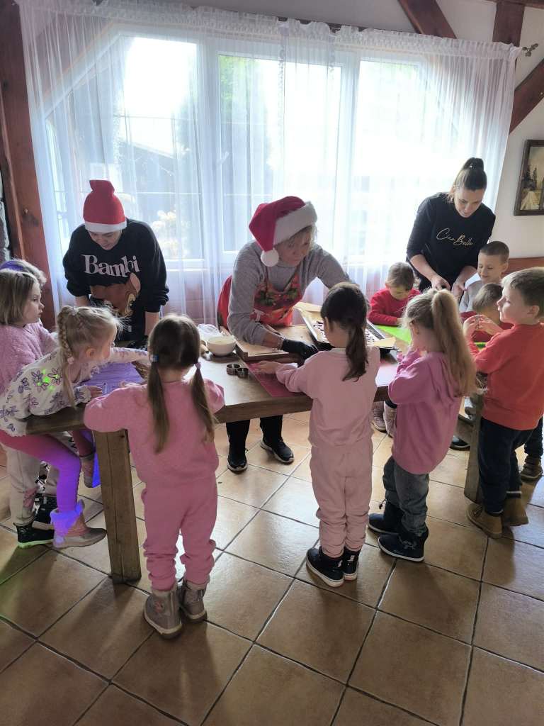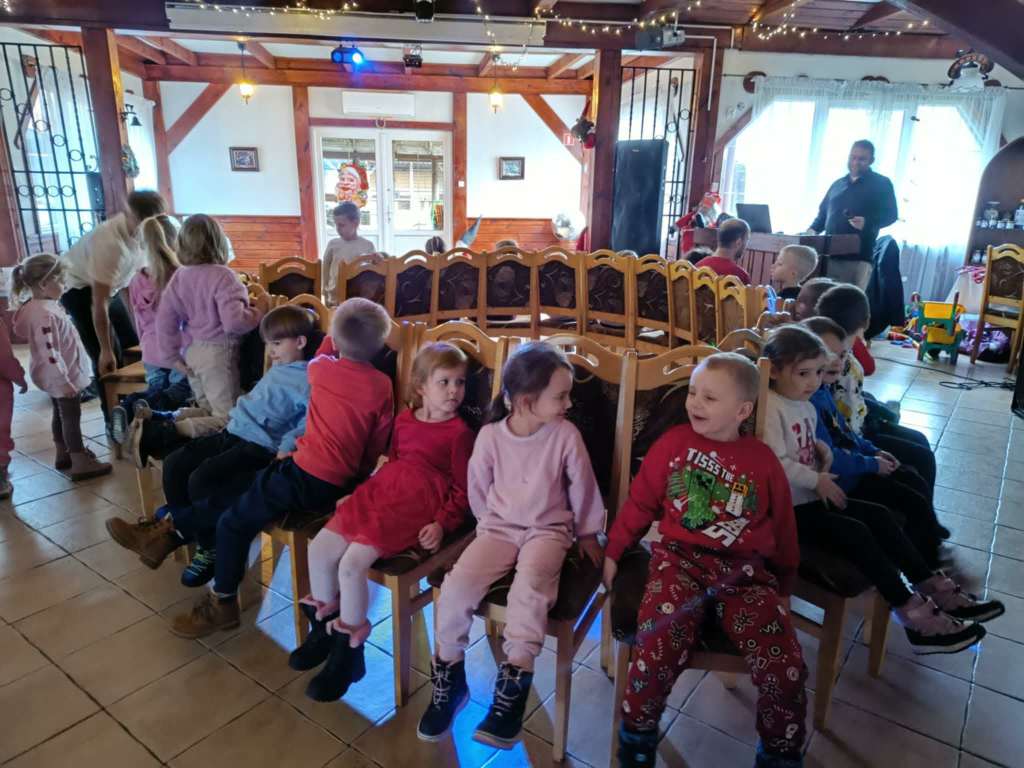 W poniedziałek z samego rana Króliczki wyruszyły na wycieczkę do Dworku Andrzejówka w Gardzieniu, gdzie czekało na nich wyjątkowe spotkanie z… samym świętym Mikołajem – a właściwie z jego synem, który z radością wcielił się w tę magiczną rolę.Dzieci brały udział w wielu fantastycznych zabawach prowadzonych przez animatora, z zaangażowaniem przygotowywały świąteczne ciasteczka, a potem wyruszyły do lasu na poszukiwania Mikołaja. Radość była ogromna, gdy udało się go odnaleźć! Każde dziecko mogło chwilę z nim porozmawiać, zrobić pamiątkowe zdjęcie oraz odebrać świąteczny upominek.Nie zabrakło także tańców, wspólnego śmiechu i mnóstwa radosnych emocji. Po zabawach Króliczki zostały poczęstowane pysznymi kiełbaskami z grilla. Przemili właściciele tego miejsca zadbali o ciepłą, serdeczną atmosferę, dzięki czemu dzieci poczuły się jak w prawdziwej świątecznej krainie.Króliczki wróciły zmęczone, ale szczęśliwe i pełne świątecznego entuzjazmu.To był naprawdę magiczny dzień!