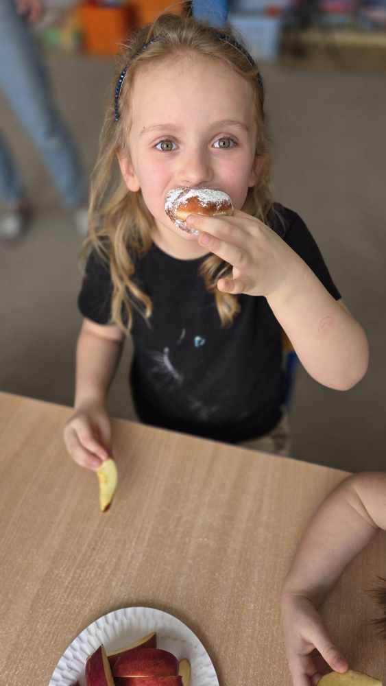 Dzieci z ogromną radością smakowały pyszne pączki, poznając przy tym jedną z najsłodszych polskich tradycji. Dowiedziały się, skąd wzięła się tradycja Tłustego Czwartku i dlaczego właśnie tego dnia zajadamy się pączkami oraz innymi słodkościami.