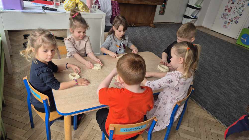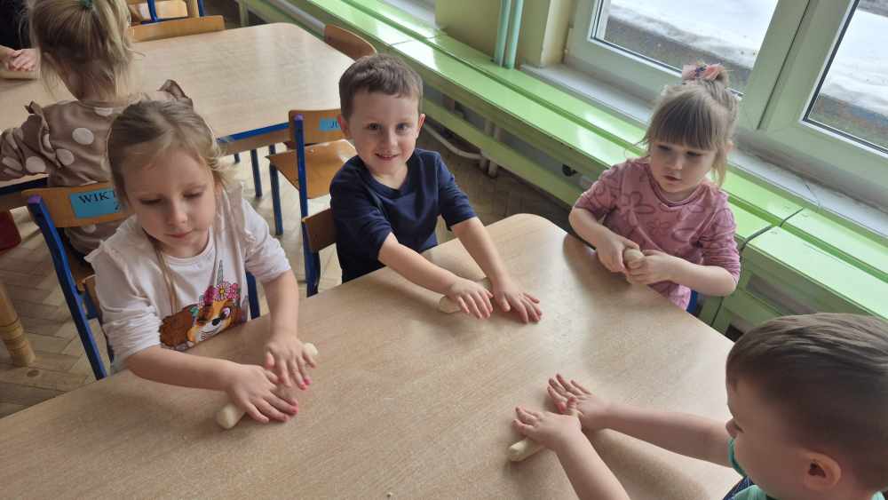 Nie zabrakło także kulinarnych aktywności – przedszkolaki przygotowywały własne słodkości, wykazując się kreatywnością i świetną współpracą. Było mnóstwo frajdy, śmiechu i… odrobina cukru na noskach 😊