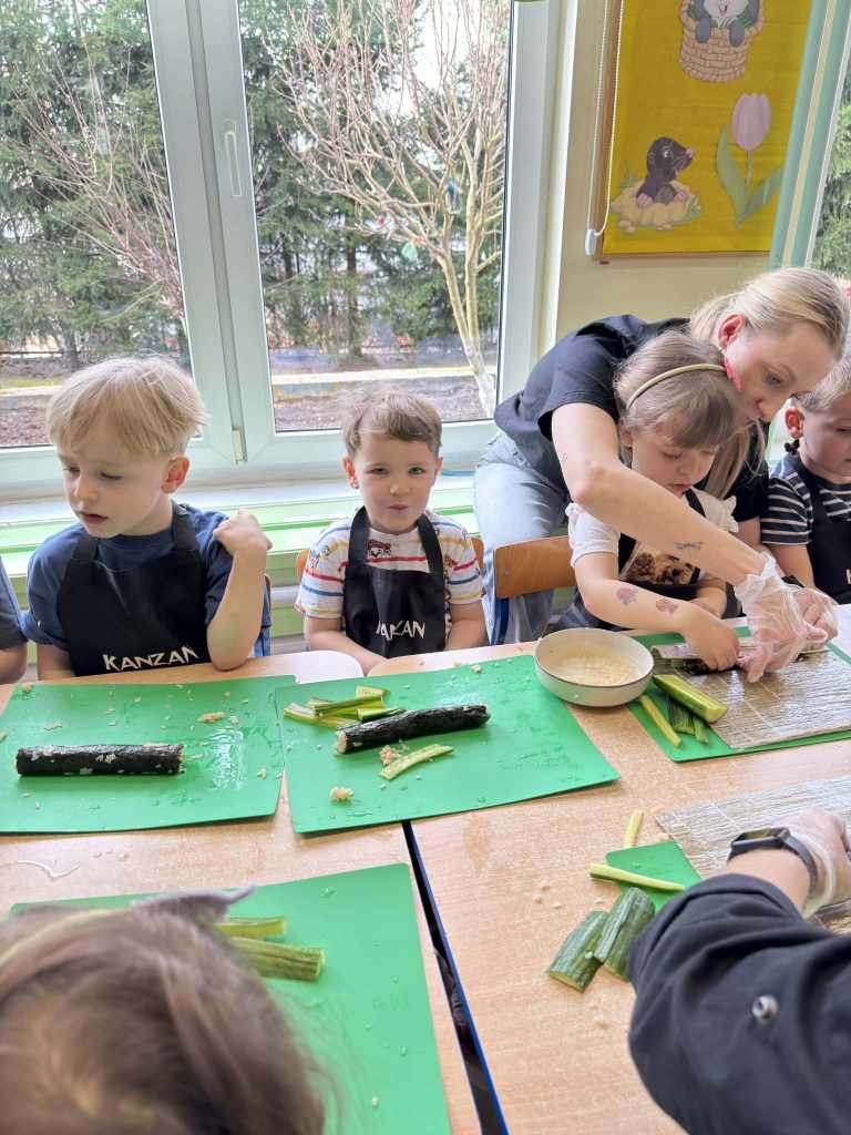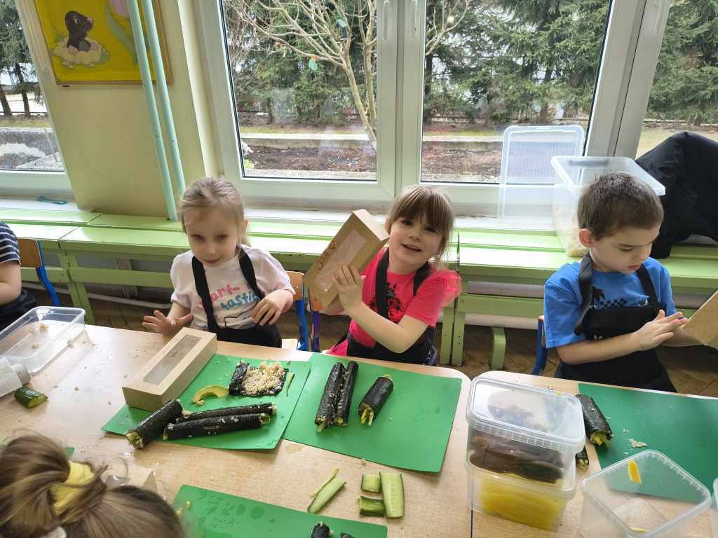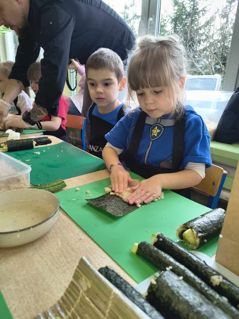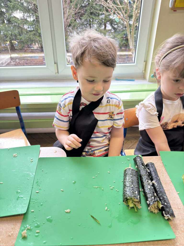 własnych rolek! Dzieci z ogromnym zaangażowaniem układały składniki, zwijały