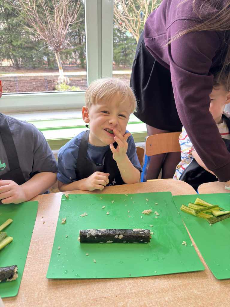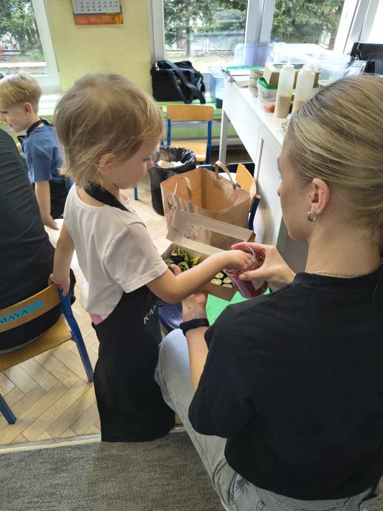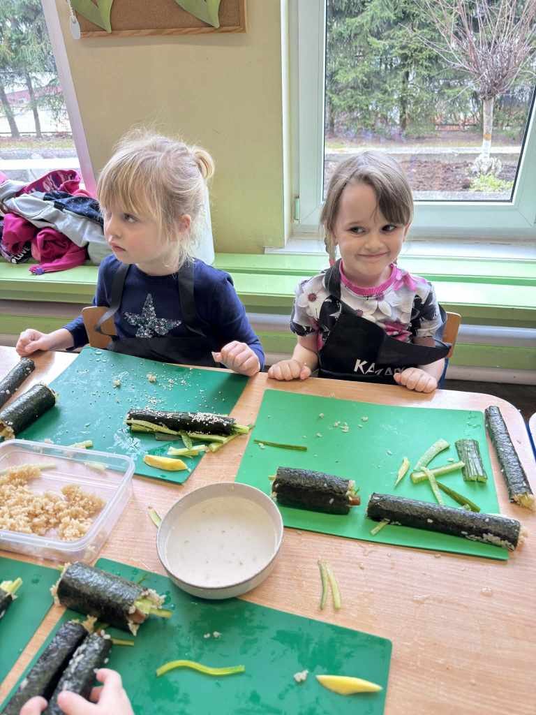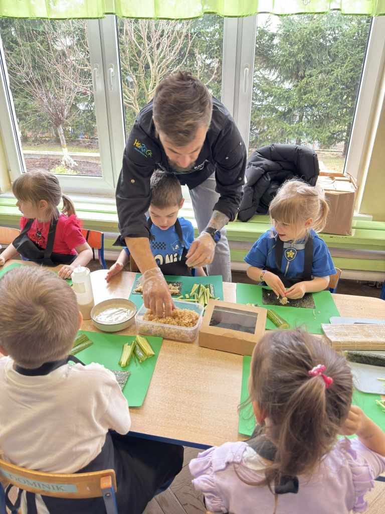 własnych rolek! Dzieci z ogromnym zaangażowaniem układały składniki, zwijały