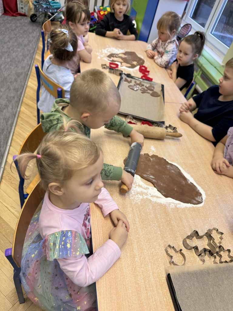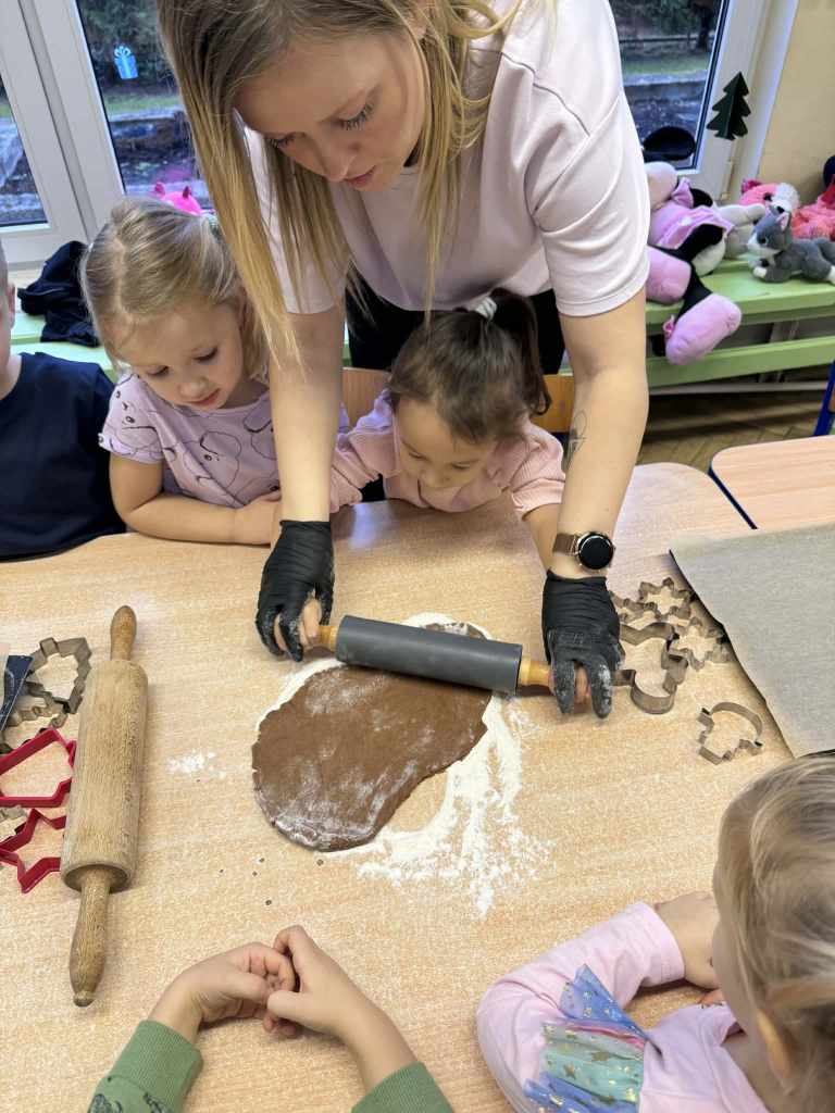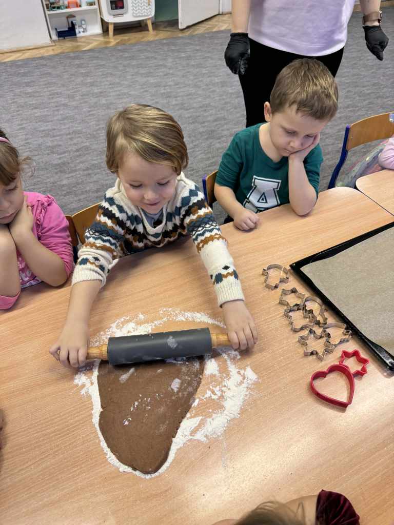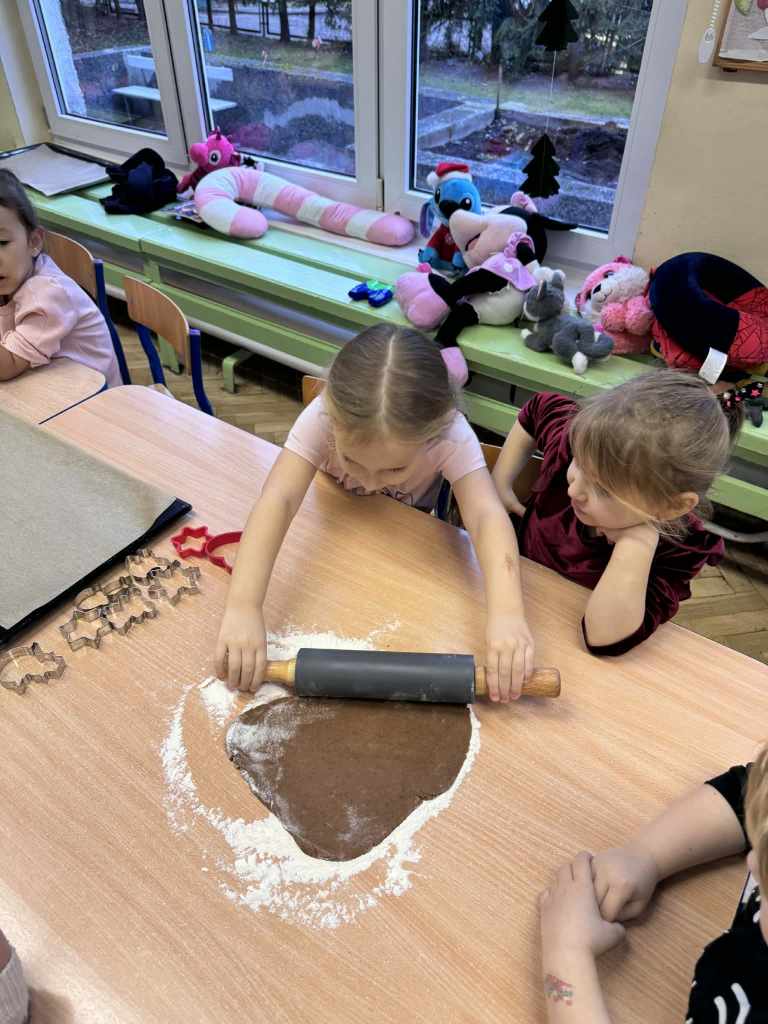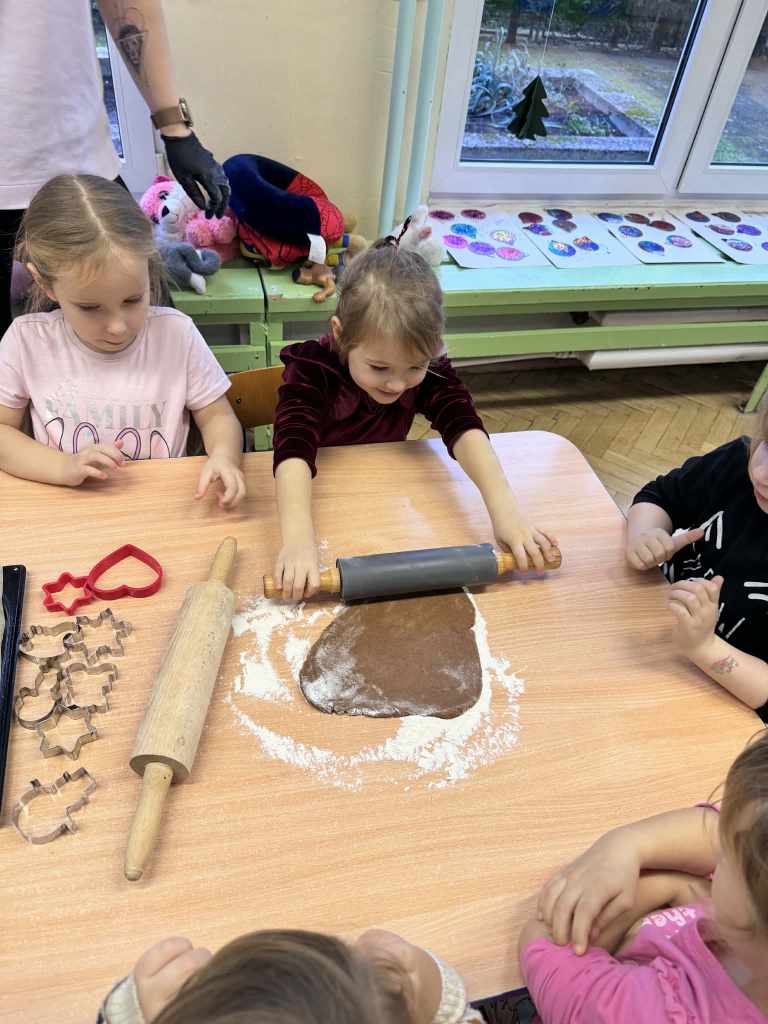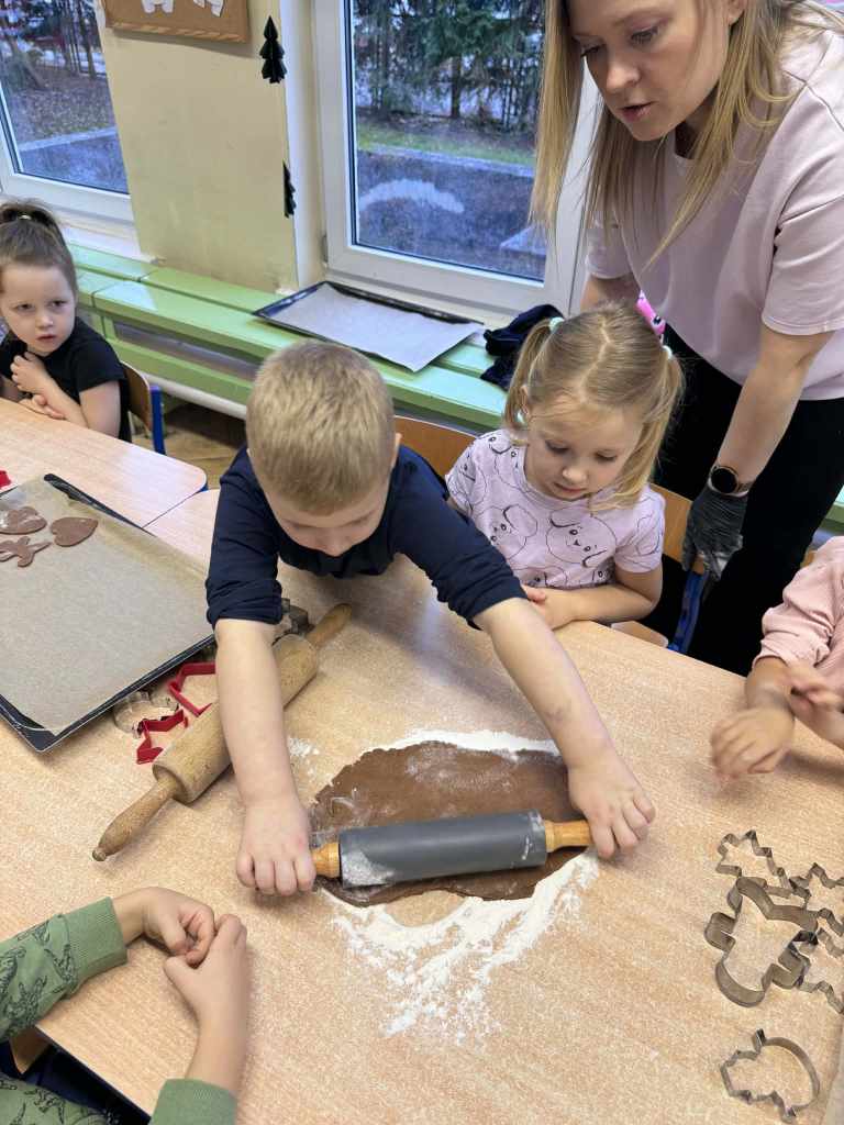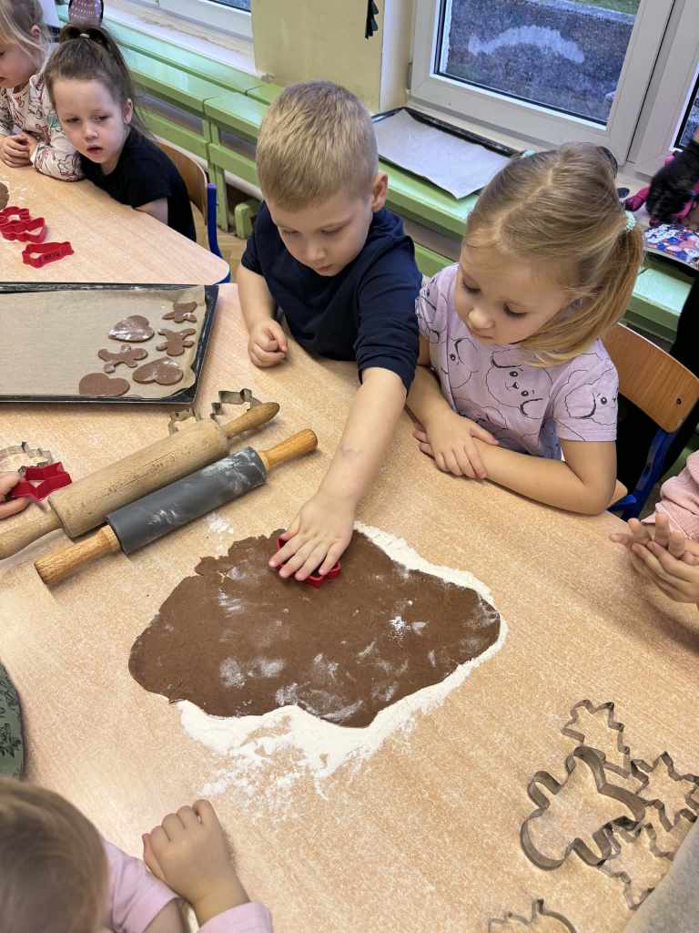 W naszej grupie „Tygryski” zapanowała prawdziwie świąteczna atmosfera. Dzieci z wielkim zaangażowaniem uczestniczyły w pieczeniu pierniczków. Najpierw poznały potrzebne składniki oraz zasady bezpieczeństwa w kuchni, a następnie wspólnie wałkowały ciasto i wykrawały pierniczki w różnych kształtach. Nie zabrakło serduszek, gwiazdek i choinek.