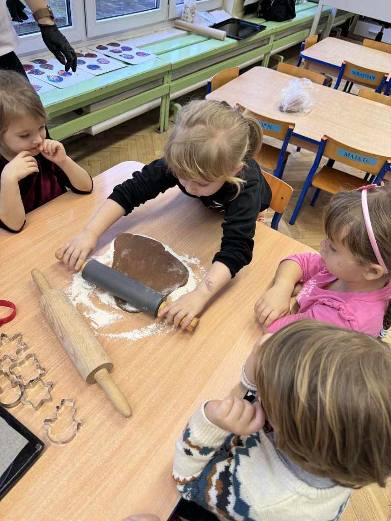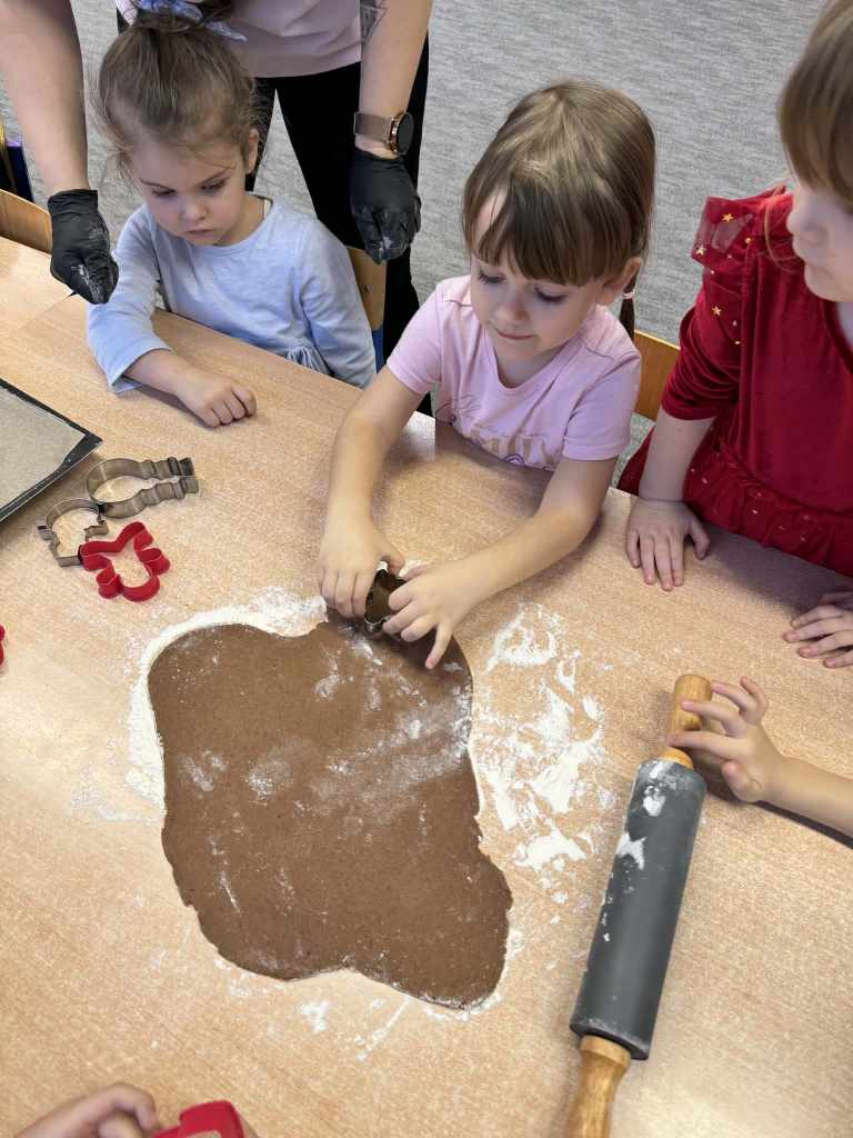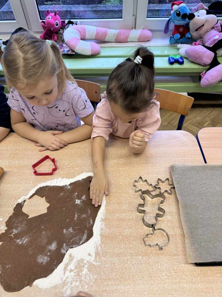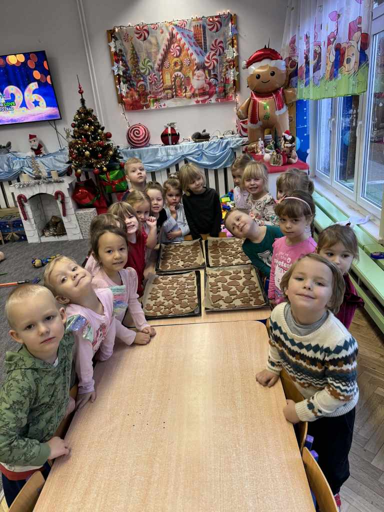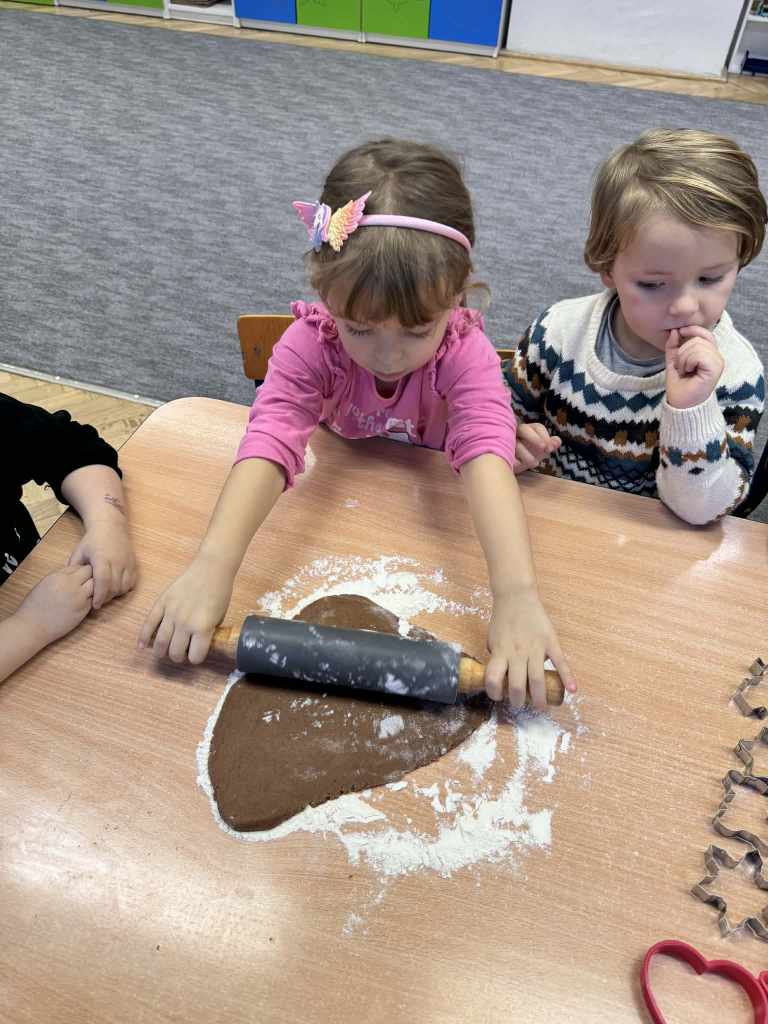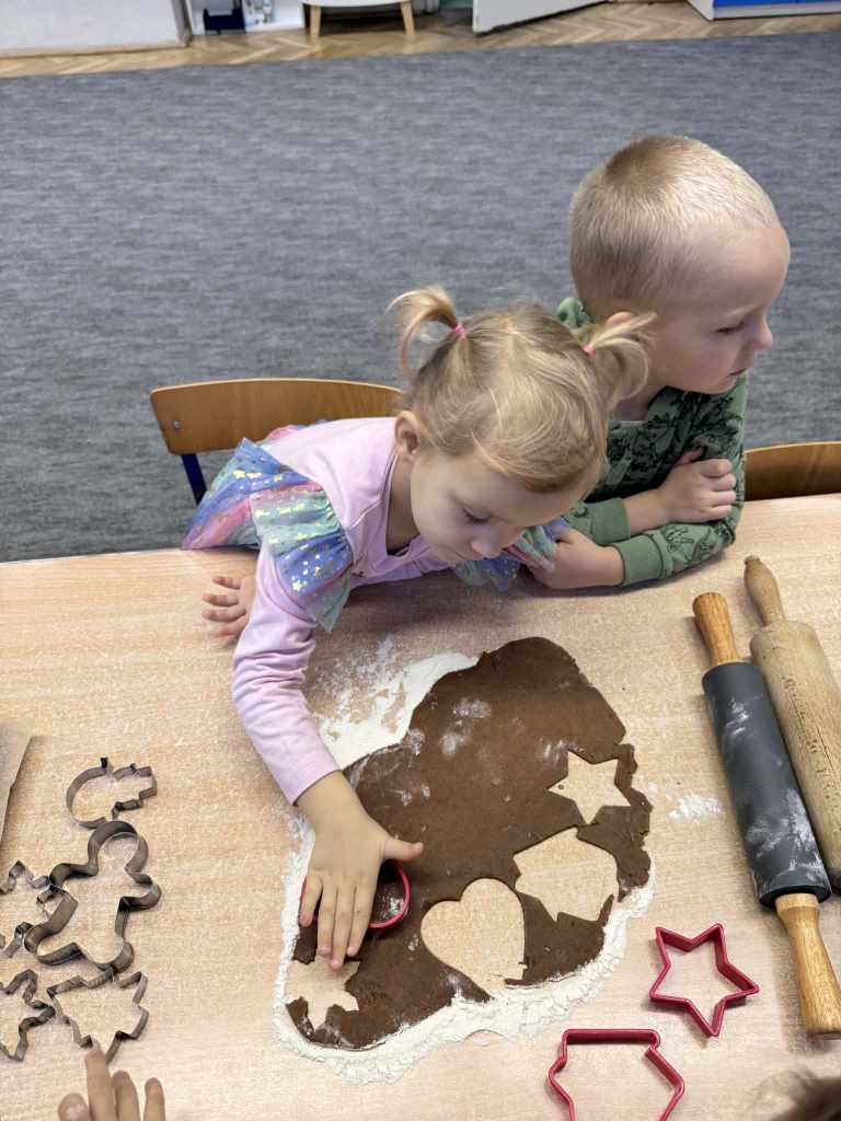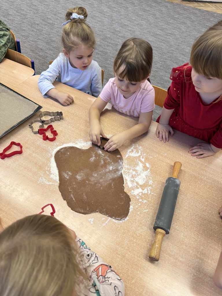 W naszej grupie „Tygryski” zapanowała prawdziwie świąteczna atmosfera. Dzieci z wielkim zaangażowaniem uczestniczyły w pieczeniu pierniczków. Najpierw poznały potrzebne składniki oraz zasady bezpieczeństwa w kuchni, a następnie wspólnie wałkowały ciasto i wykrawały pierniczki w różnych kształtach. Nie zabrakło serduszek, gwiazdek i choinek.