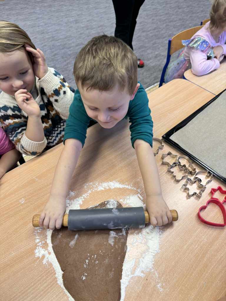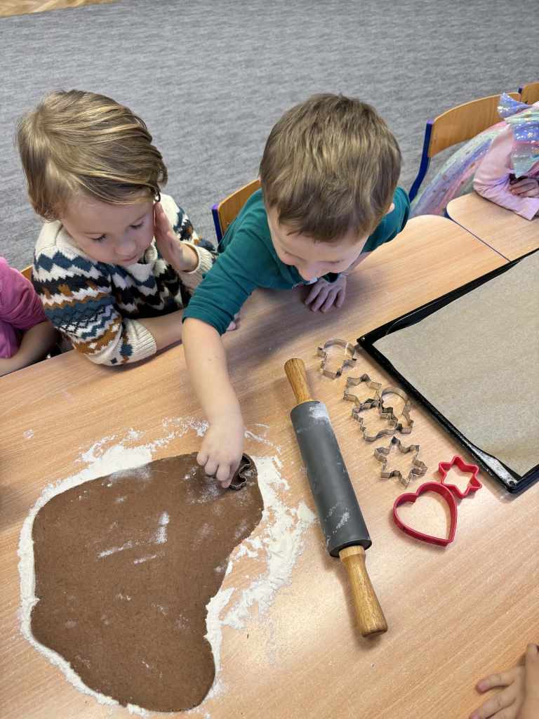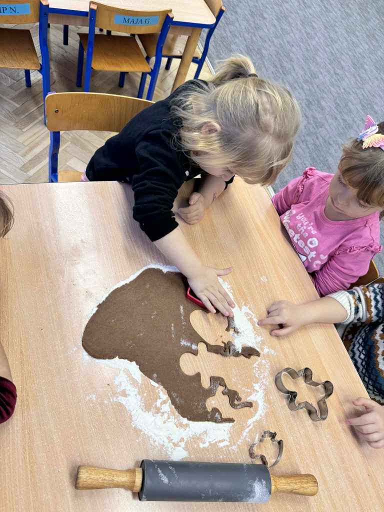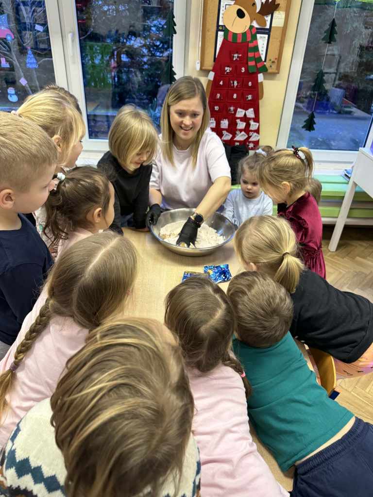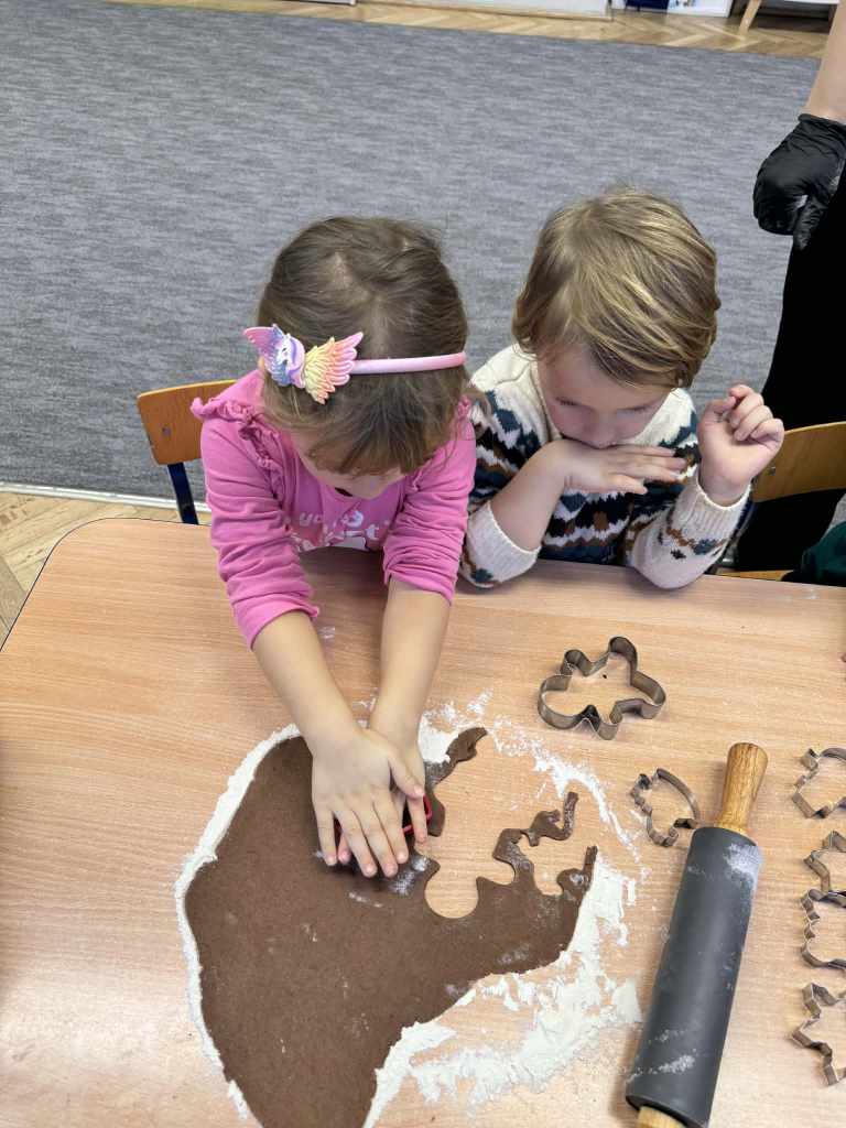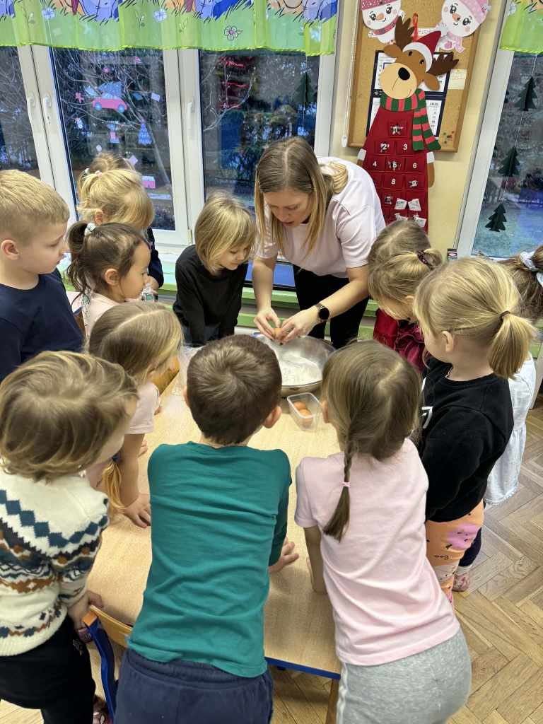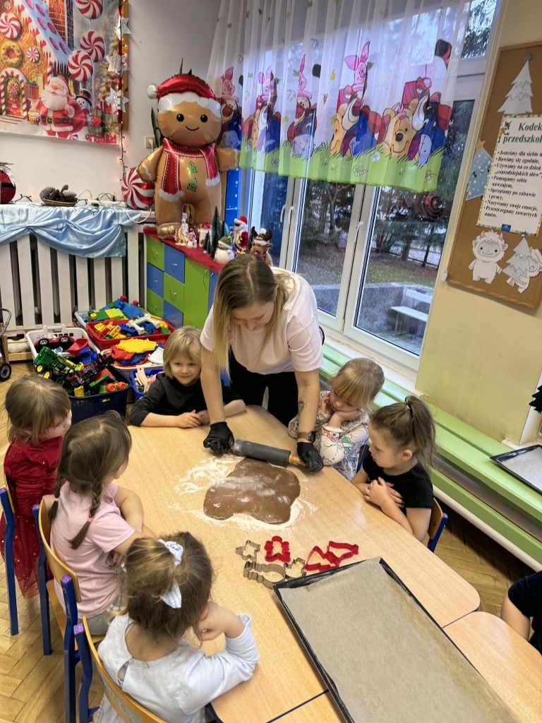 W naszej grupie „Tygryski” zapanowała prawdziwie świąteczna atmosfera. Dzieci z wielkim zaangażowaniem uczestniczyły w pieczeniu pierniczków. Najpierw poznały potrzebne składniki oraz zasady bezpieczeństwa w kuchni, a następnie wspólnie wałkowały ciasto i wykrawały pierniczki w różnych kształtach. Nie zabrakło serduszek, gwiazdek i choinek.