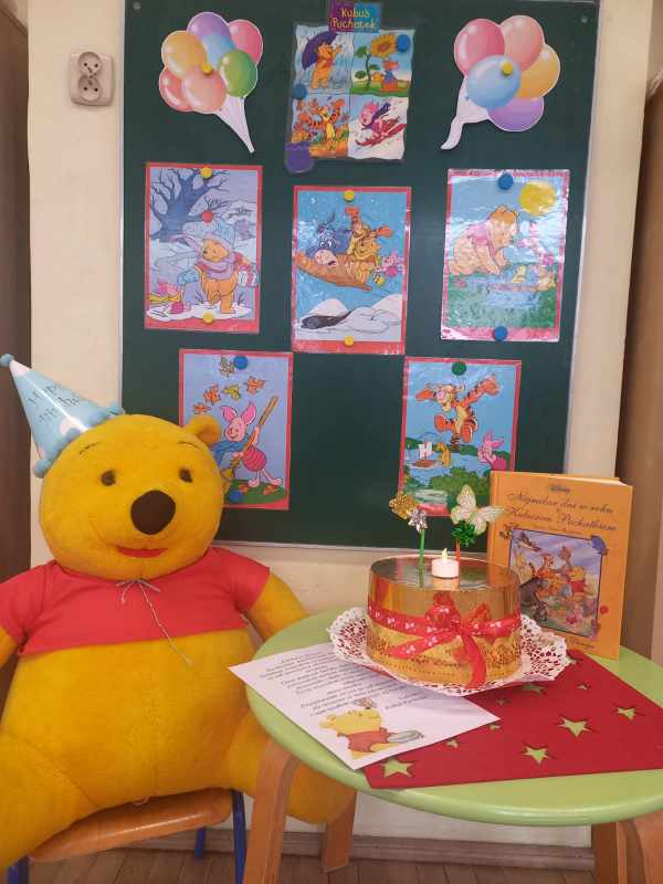 Obchodziliśmy urodziny Kubusia Puchatka, który jest nam szczególnie bliski, bo nasze przedszkole nosi imię Chatki Przyjaciół Kubusia Puchatka.