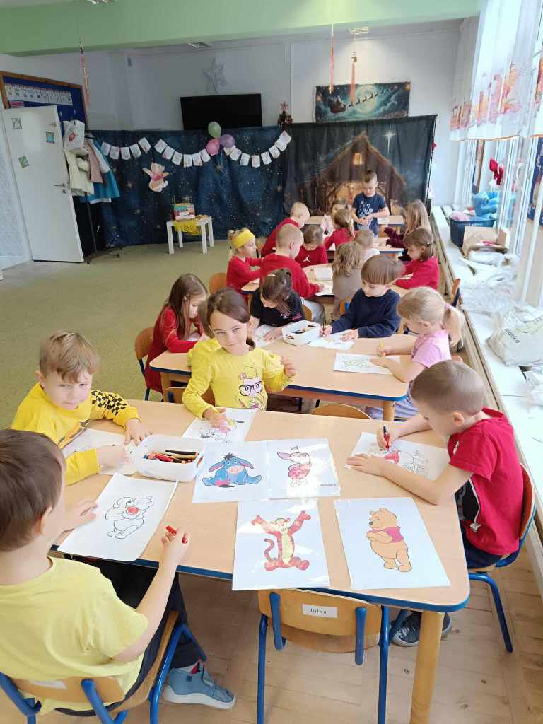 Przedszkolaki wykonały piękne prace plastyczne inspirowane Stumilowym Lasem, a na zakończenie czekały na wszystkich słodkości, które Kubuś lubi najbardziej.