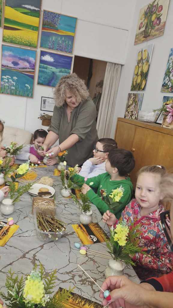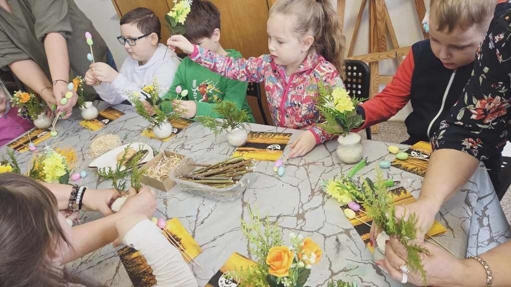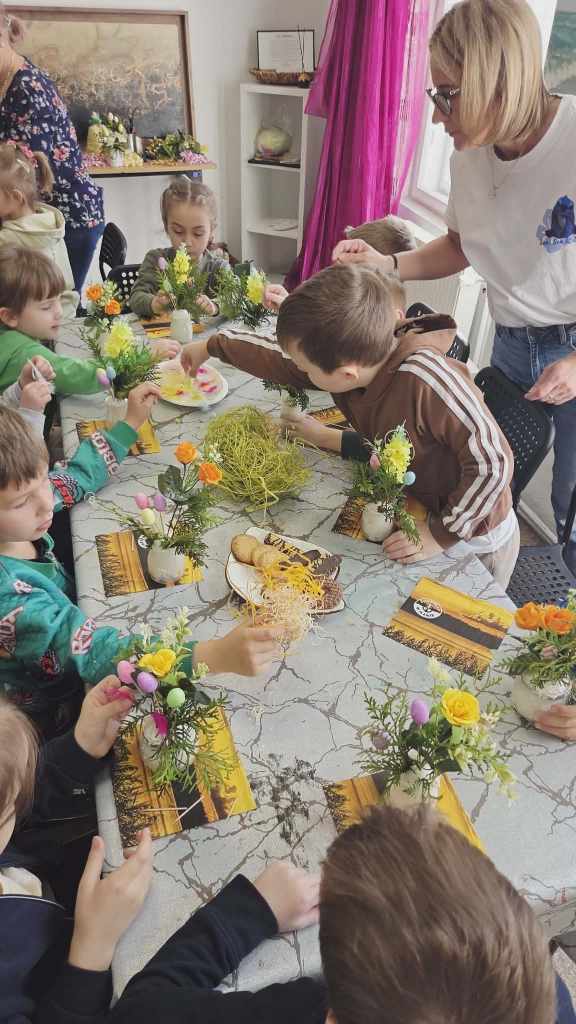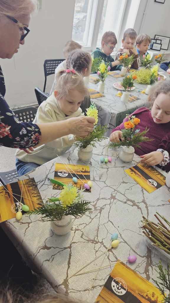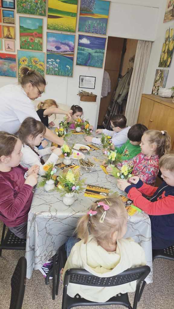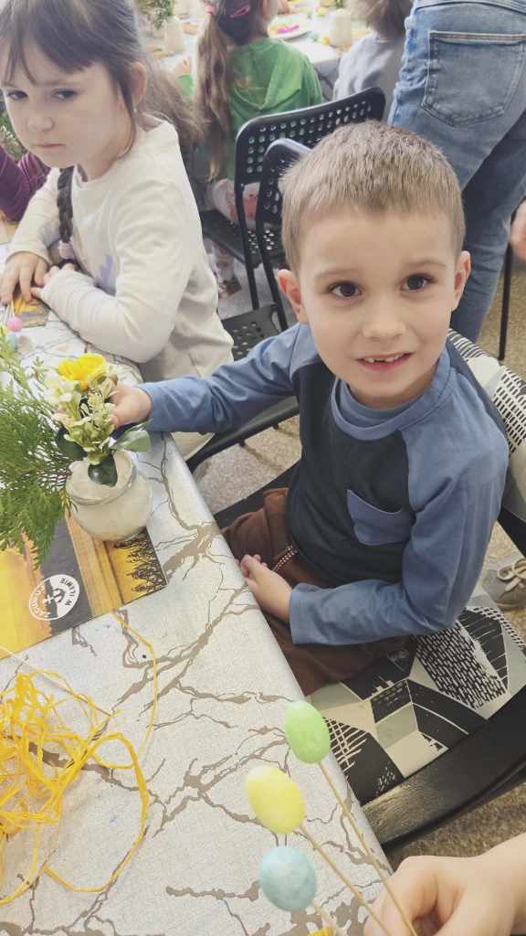 Dzieci z grupy Sowy uczestniczyły w wyjątkowych warsztatach świątecznych zorganizowanych w iławskiej Galerii SART.Podczas zajęć z ogromnym zaangażowaniem tworzyły przepiękne stroiki wielkanocne. Była to doskonała okazja do rozwijania kreatywności, wyobraźni oraz poczucia estetyki.Własnoręcznie przygotowane stroiki z pewnością staną się piękną ozdobą w domach naszych małych artystów.Serdecznie dziękujemy za zorganizowanie inspirujących warsztatów i miłą atmosferę! ❤️Polecamy również odwiedziny w galerii – można tam znaleźć wiele przepięknych i wyjątkowych rzeczy.