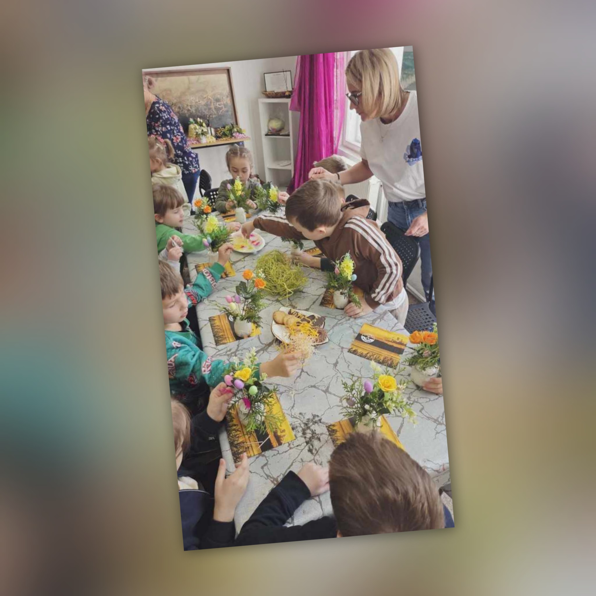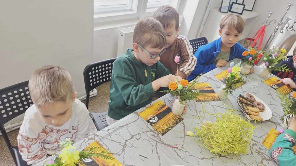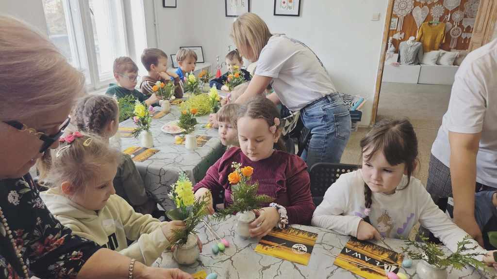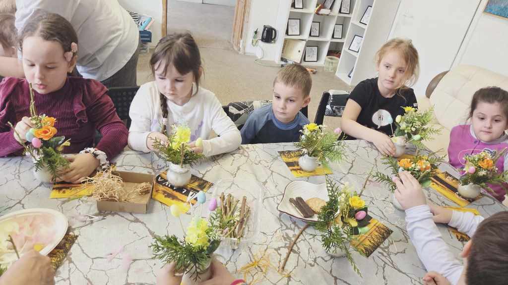 Dzieci z grupy Sowy uczestniczyły w wyjątkowych warsztatach świątecznych zorganizowanych w iławskiej Galerii SART.Podczas zajęć z ogromnym zaangażowaniem tworzyły przepiękne stroiki wielkanocne. Była to doskonała okazja do rozwijania kreatywności, wyobraźni oraz poczucia estetyki.Własnoręcznie przygotowane stroiki z pewnością staną się piękną ozdobą w domach naszych małych artystów.Serdecznie dziękujemy za zorganizowanie inspirujących warsztatów i miłą atmosferę! ❤️Polecamy również odwiedziny w galerii – można tam znaleźć wiele przepięknych i wyjątkowych rzeczy.