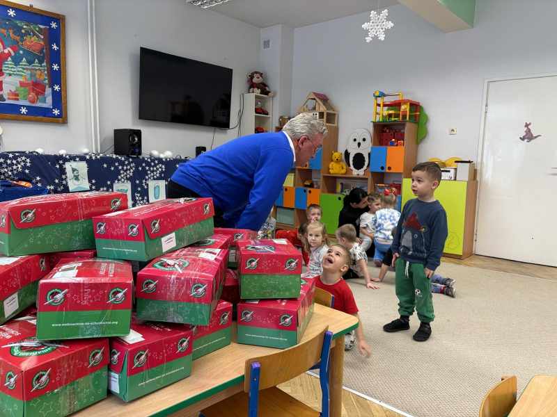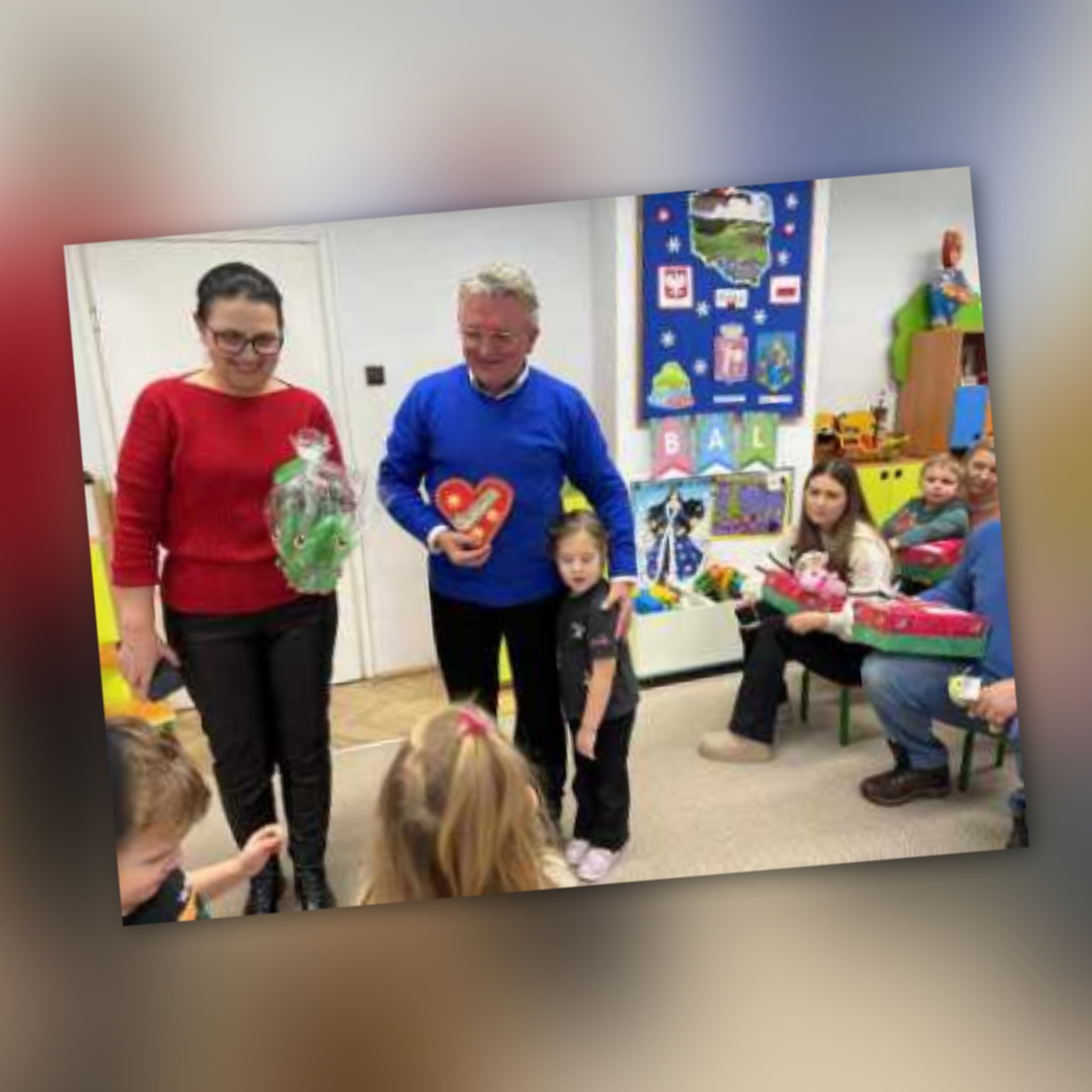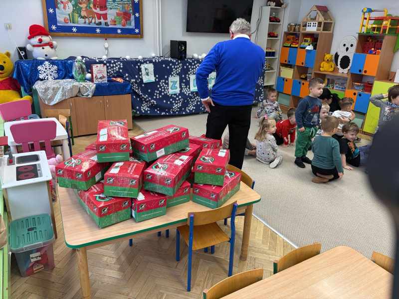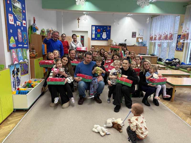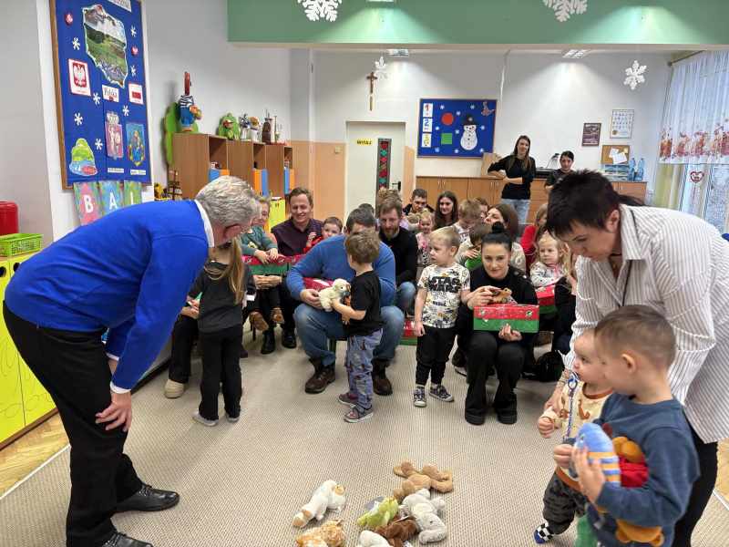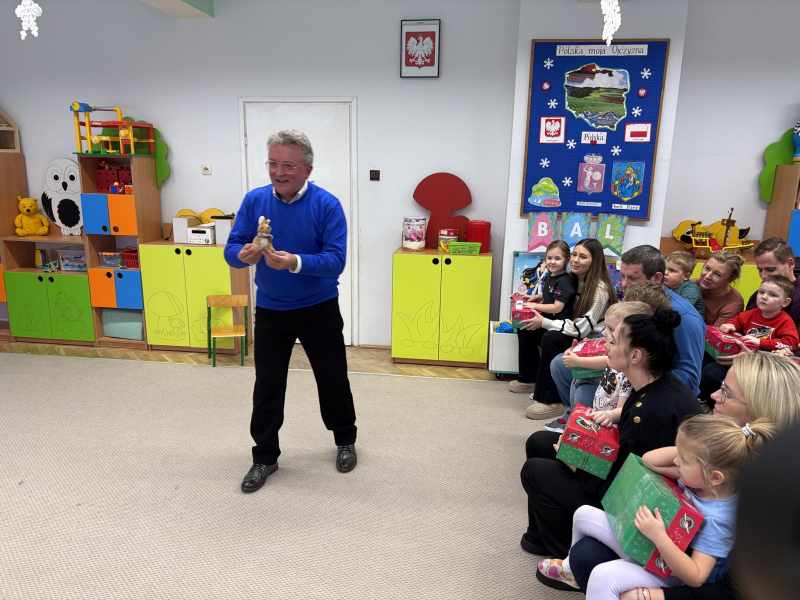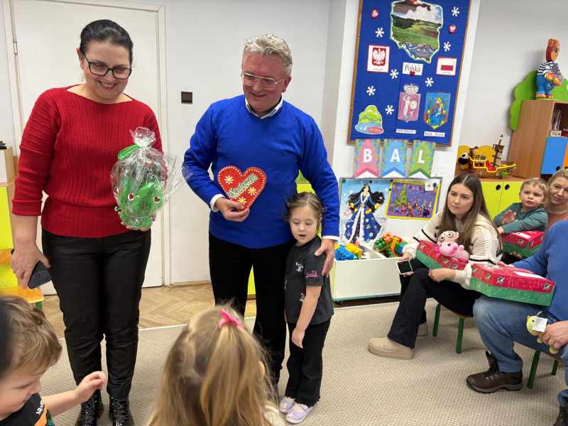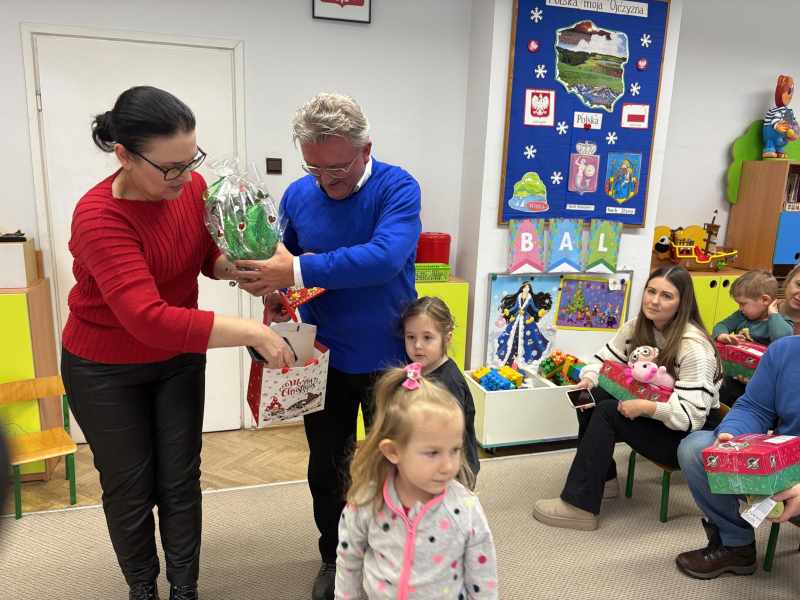 Dzisiaj w grupie ,, Kangurków,, mieliśmy przyjemność gościć pastora Krzysztofa Kopacza wraz z małżonką, którzy przygotowali i zorganizowali dla dzieci paczki z prezentami sprowadzone przez indywidualne osoby z Niemiec . Dzieci i rodzice byli bardzo szczęśliwi z upominków.