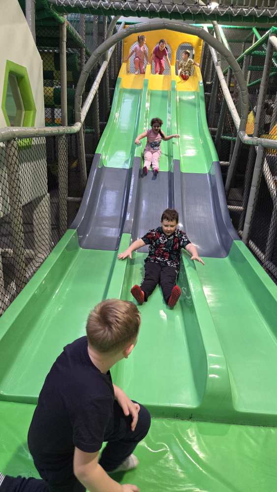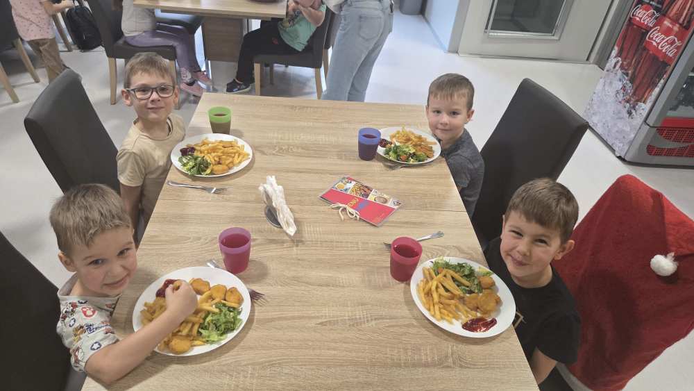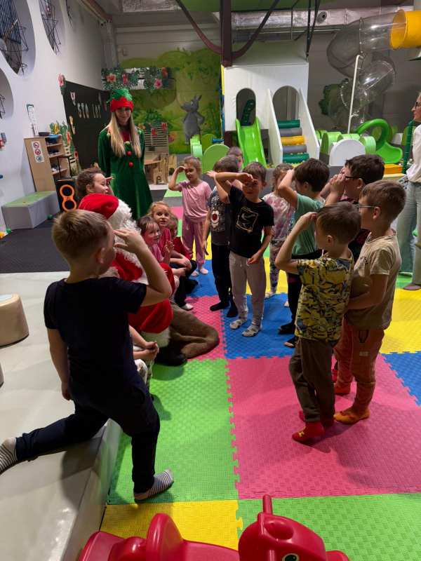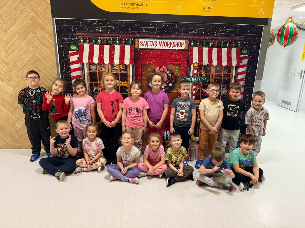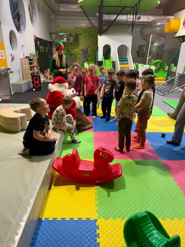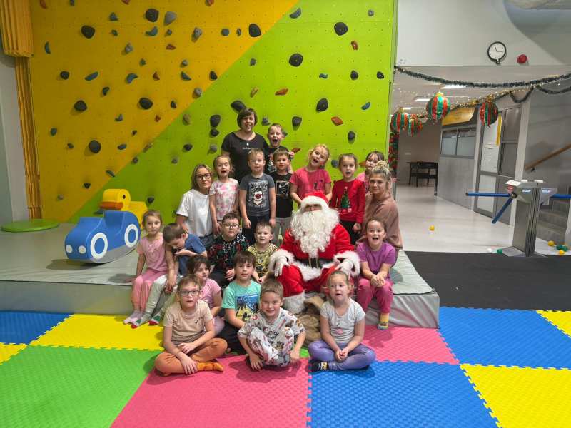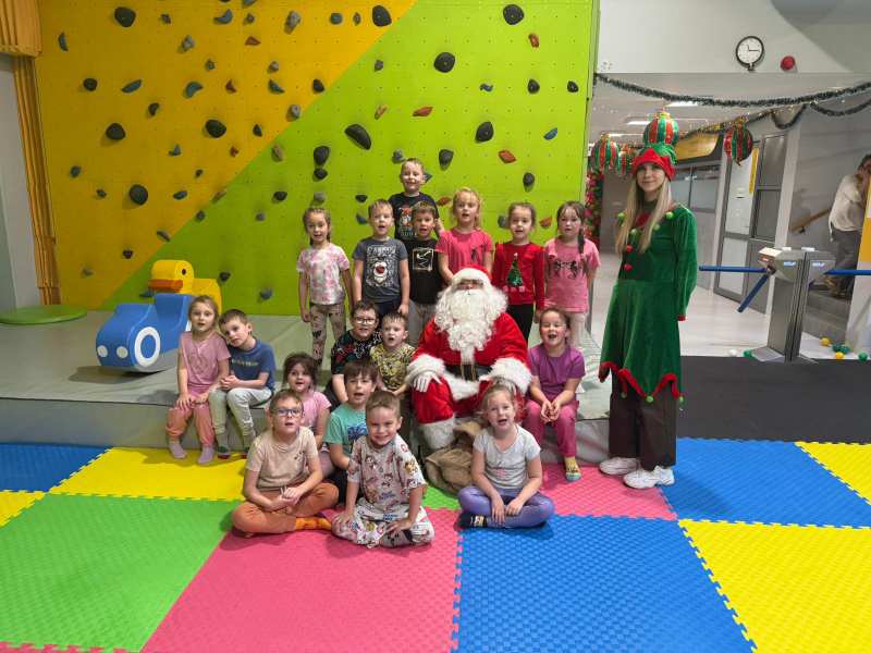 Dzieci z grupy Sówki wybrały się na wyjątkową wycieczkę do Hullo.Pierwszym punktem programu były świąteczne warsztaty LEGO, podczas których przedszkolaki z zaangażowaniem tworzyły własne konstrukcje. Budowanie z klocków pozwoliło im rozwijać kreatywność, wyobraźnię przestrzenną oraz umiejętność planowania. Dzieci pracowały zarówno indywidualnie, jak i w małych zespołach, dzięki czemu ćwiczyły również współpracę.Następnie czekała na nas niezwykła niespodzianka — spotkanie z Mikołajem. Przedszkolaki z radością witały gościa, zadając mu pytania i dzieląc się swoimi świątecznymi życzeniami. Ta chwila pozwoliła wszystkim jeszcze mocniej poczuć magiczny, świąteczny nastrój.Po warsztatach i spotkaniu z Mikołajem dzieci miały czas na aktywną zabawę w sali zabaw. Zjeżdżalnie, tory przeszkód, baseny z piłeczkami i wiele innych atrakcji zapewniły im mnóstwo ruchu i radości.Wycieczka do Hullo była dla grupy Sówki dniem pełnym kreatywności, świątecznych emocji oraz wspólnej, aktywnej zabawy. Dzieci wróciły do przedszkola uśmiechnięte i pełne wrażeń.